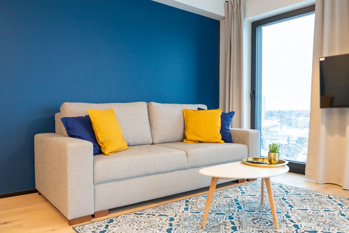 Luxusní apartmán se skvělou polohou v centru města. Ubytuj se sám/sama díky uzamykatelné skříňce. Dvoupokojový apartmán se nachází v centru Tallinnu. Byt je snadno dostupný pro hosty přijíždějící trajektem (10 minut chůze od přístavu) a letadlem (10 až 15 minut tramvají). Je ideální pro ty, kteří chtějí prozkoumat město, navštívit architektonicky cenné Staré město nebo se zastavit v přístavu. Je to také ubytování vhodné pro rodiny.