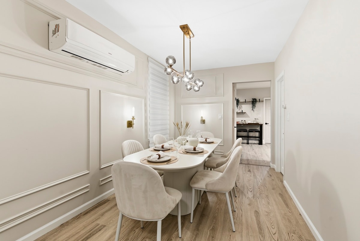 Zážitek NYC & NJ: Centrálně umístěný dvoupokojový byt, 5 minut chůze od vlaku do centra & Midtown NYC. Pohodlné ubytování ve velmi bezpečné a klidné čtvrti. Vybavení: → Rychlé wifi → Stylové pracovní prostory → 50palcová živá televize se službou Netflix a Amazon Prime → Monitoři pracovních stanic v ložnicích → Pračka a sušička → Velká kuchyně → Oplocený dvorek vhodný→ pro domácí mazlíčky Menší manželská postel s→ paměťovou pěnou Nafukovací matrace velikosti→ Queen → Dlouhodobé a krátkodobé pobyty → Zdravotníci a služebně cestující→ do destinací