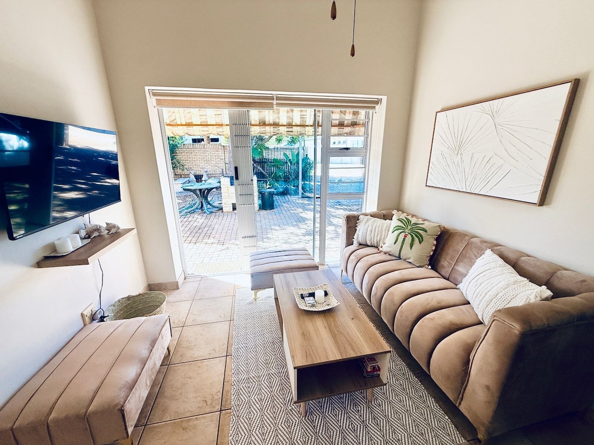 Vítej! Tvůj domov daleko od domova! Náš prostorný nový vylepšený apartmán se nachází v centru Mossel Bay a nabízí úžasný výhled na moře a hory. Je ideální pro čtyřčlenné rodiny (2 dospělí, 2 děti). Užij si velkou ložnici (postel velikosti queen), útulný obývací prostor s pohodlnou rozkládací pohovkou pro dva a plně vybavenou kuchyň. Odpočiň si u bazénu a užij si venkovní grilování. Neomezená WiFi, Netflix a DSTV, vše, co potřebuješ pro dokonalý pobyt. Ideální únik od civilizace, jen 2,5 km od pláže a nákupních center!