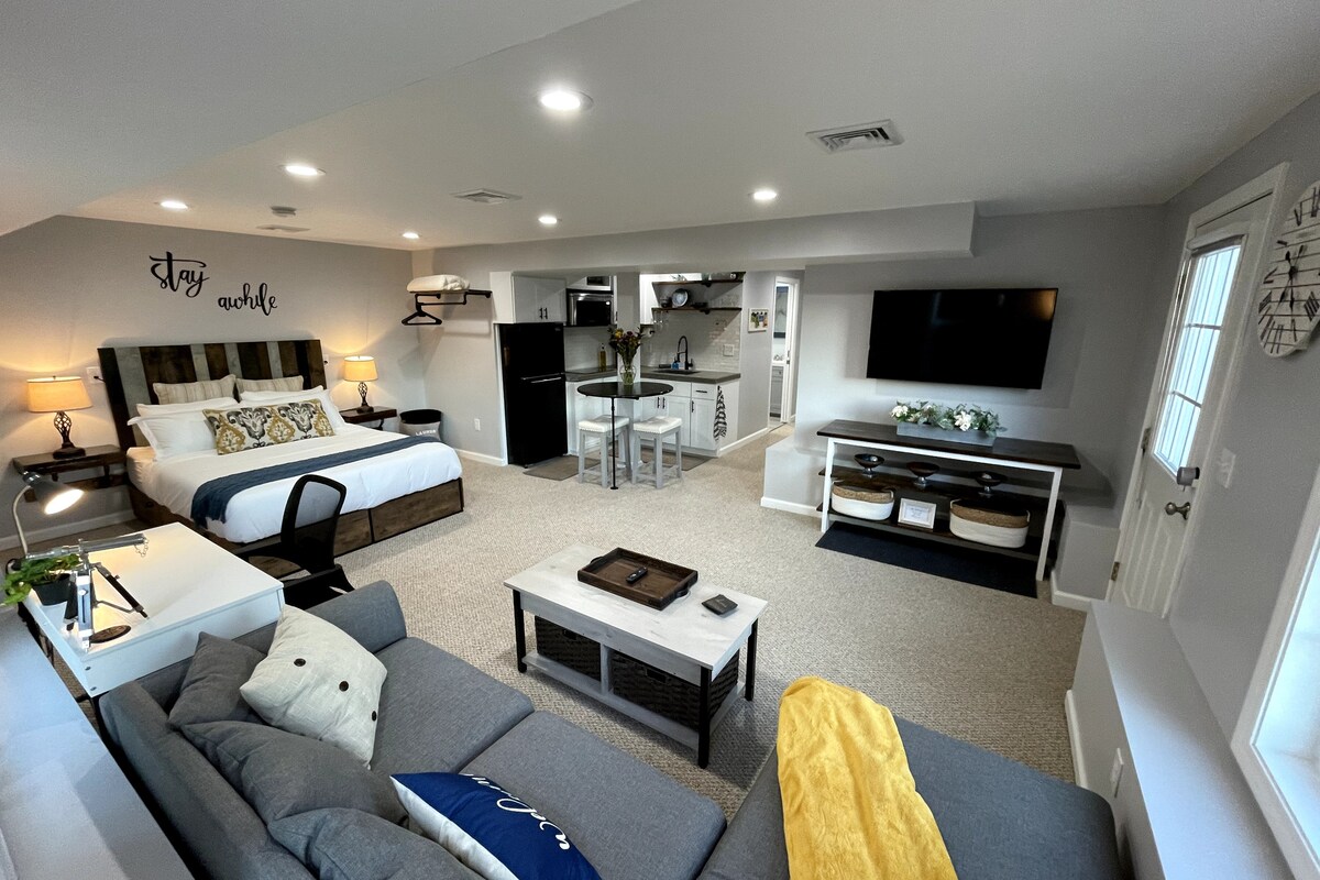 Soukromý útulný apartmá pro tebe! Lepší než hotel nebo soukromý pokoj a levnější než celý dům. Domácí mazlíčci jsou vítáni bez poplatků :) Velkorysé slevy pro střednědobé až dlouhodobé pobyty. Apartmá pro hosty zahrnuje nově zařízený obývací pokoj, kuchyňský kout, velkou ložnici s koupelnou. Navzdory mnoha rekonstrukcím jsme si zachovali vintage a útulný šarm. Samostatná wifi pro práci na dálku. Méně než 20 minut na letiště a metro Hartford. Nabíječka pro elektromobily zdarma. Žádné poplatky za úklid!