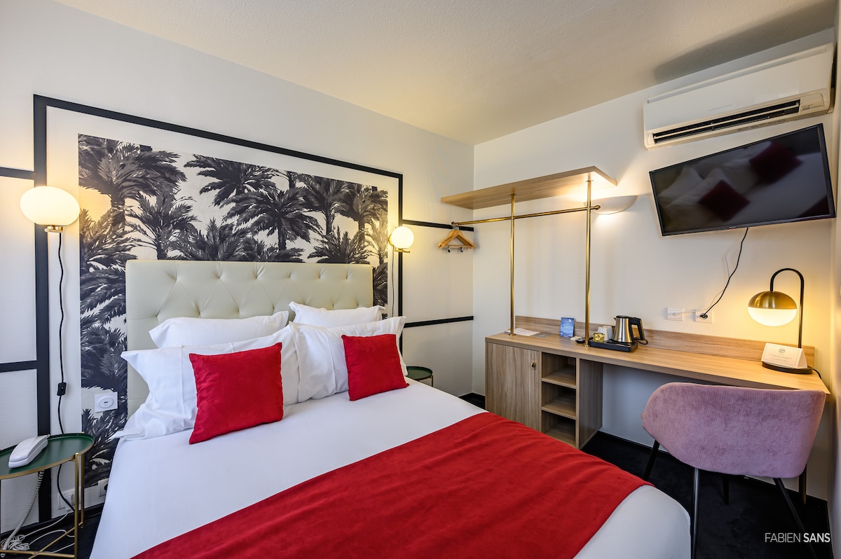 Naše pohodlná a praktická dvoulůžková studia (17-25 m ²) nabízejí manželskou postel nebo rozkládací postel v závislosti na ploché konfiguraci nebo rozkládací pohovku vyrobenou při příjezdu, klimatizaci, zvukotěsná okna, zatemňovací závěsy a TV s plochou obrazovkou. Určitě oceníte kuchyňský kout plně vybavený pro 2 osoby. You will also enjoy the work area with a phone.