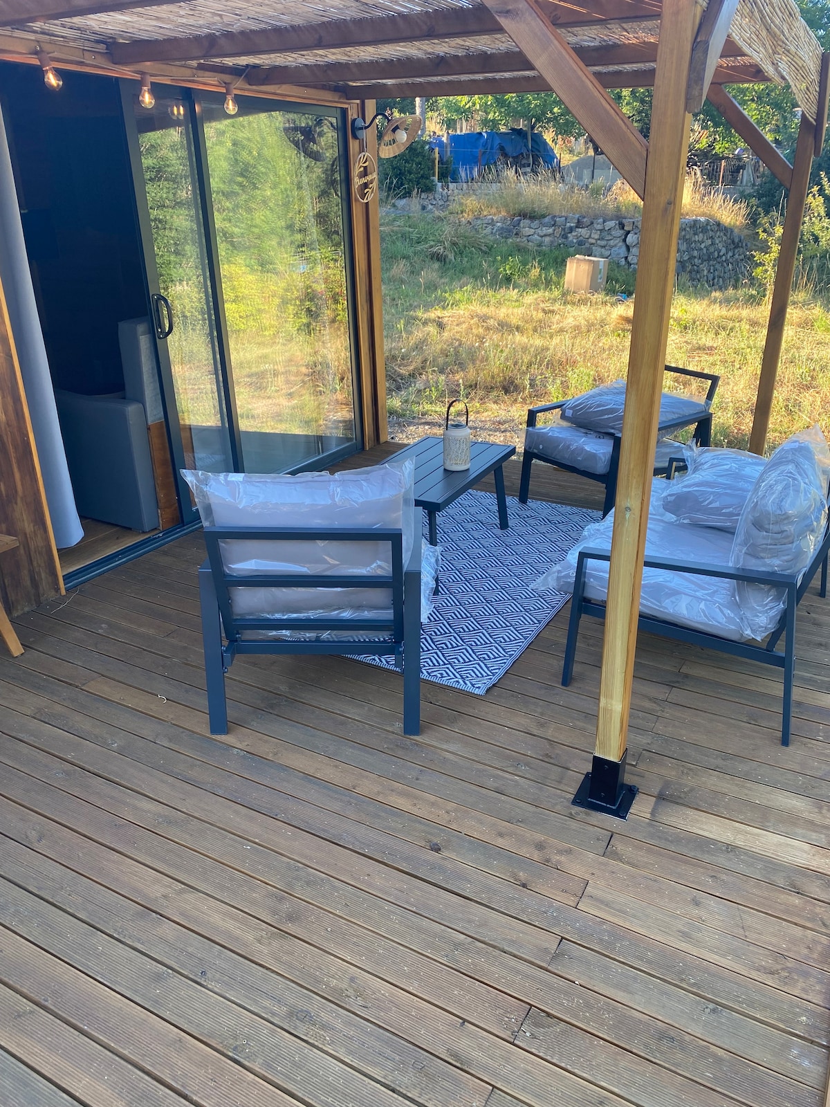 Na okraji lesa si můžeš vychutnat klid a autentičnost tohoto ubytování v srdci nedotčené přírody. V tomto mobilním domě o rozloze 40 m2, který se nachází hned vedle nás, najdete: – Obývací pokoj s jídelním koutem s výhledem na terasu a oplocenou zahradu, s rozkládací pohovkou - Plně vybavený kuchyňský kout – 2 koupelny se sprchami a pračkou - 2 toalety, - 2 ložnice, každá s postelí o rozměrech 140x190. - 1 soukromé a kryté parkovací místo.