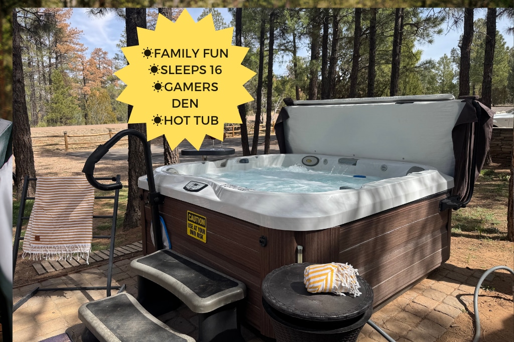 Vítejte v SORENSEN RETREAT, který se nachází v krásném malebném městě Heber-Overgaard v Arizoně! Unikněte horku v údolí a naplánujte si pobyt v naší jedinečně přestavěné chatě se 2 ložnicemi a 1 koupelnou, která se nachází na 2,5 akru nádherných borovic. Užijte si mnoho venkovních prostor, včetně velkého ohniště, grilu a vířivky. Zažijte turistické stezky, rybaření na místních jezerech, jízdu v terénu národním lesem nebo jen relaxaci a odpočinek od shonu života.