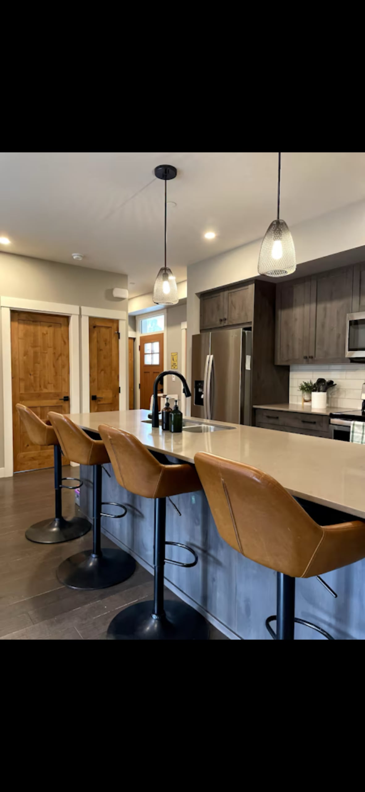 Nově postavený 1000 m² Apartmá s moderním statkovým dekorem. Klenuté stropy a velká, světlá okna s nádherným výhledem na kopce. Plně vybavená kuchyně s jídelním a obývacím prostorem. Pultová deska Quartz Island. Elektrický krb. Prostorná koupelna s dvojitým umyvadlem. Pěkně zařízené ložnice se skvělým výhledem. Terasa u jídelny, vířivka a trampolína na zadním dvoře. Samostatný vchod a soukromý prostor nad garáží. Dvojitý pozemek s námi v domě připojeném.