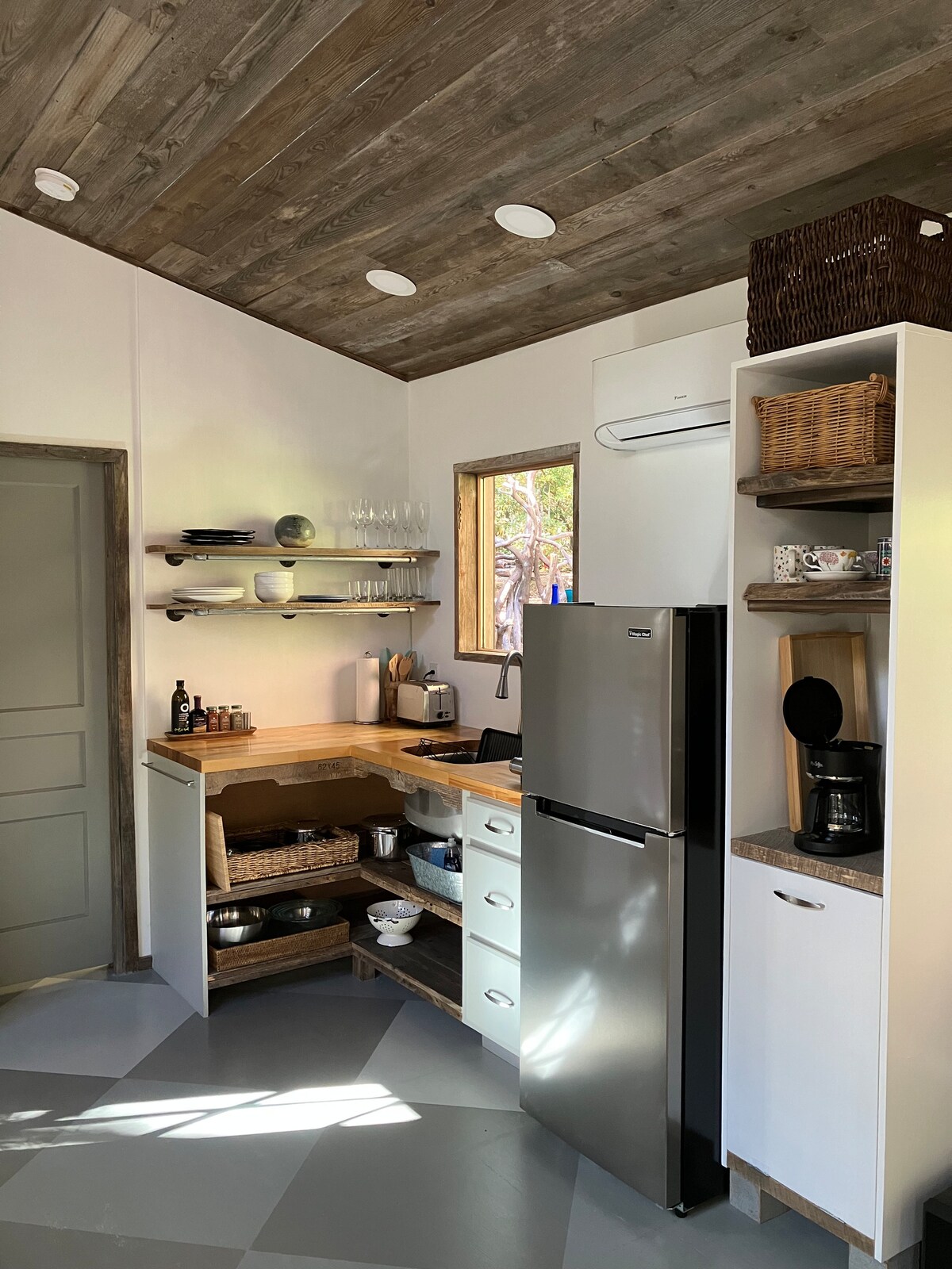 Užij si všechna venkovní dobrodružství, která Asheville nabízí, a přespi v mini domě ve skandinávském stylu, který se nachází na 50 akrech zemědělské půdy a lesa. Přímo naproti pivovaru Sierra Nevada Brewing, který se nachází na druhé straně řeky French Broad River, a pouhých 15 minut od regionálního letiště v Asheville, si můžete užít nerušený výhledy na farmu, zatímco si budete opékat marshmallows a vychutnávat sklenku vína na své soukromé terase.