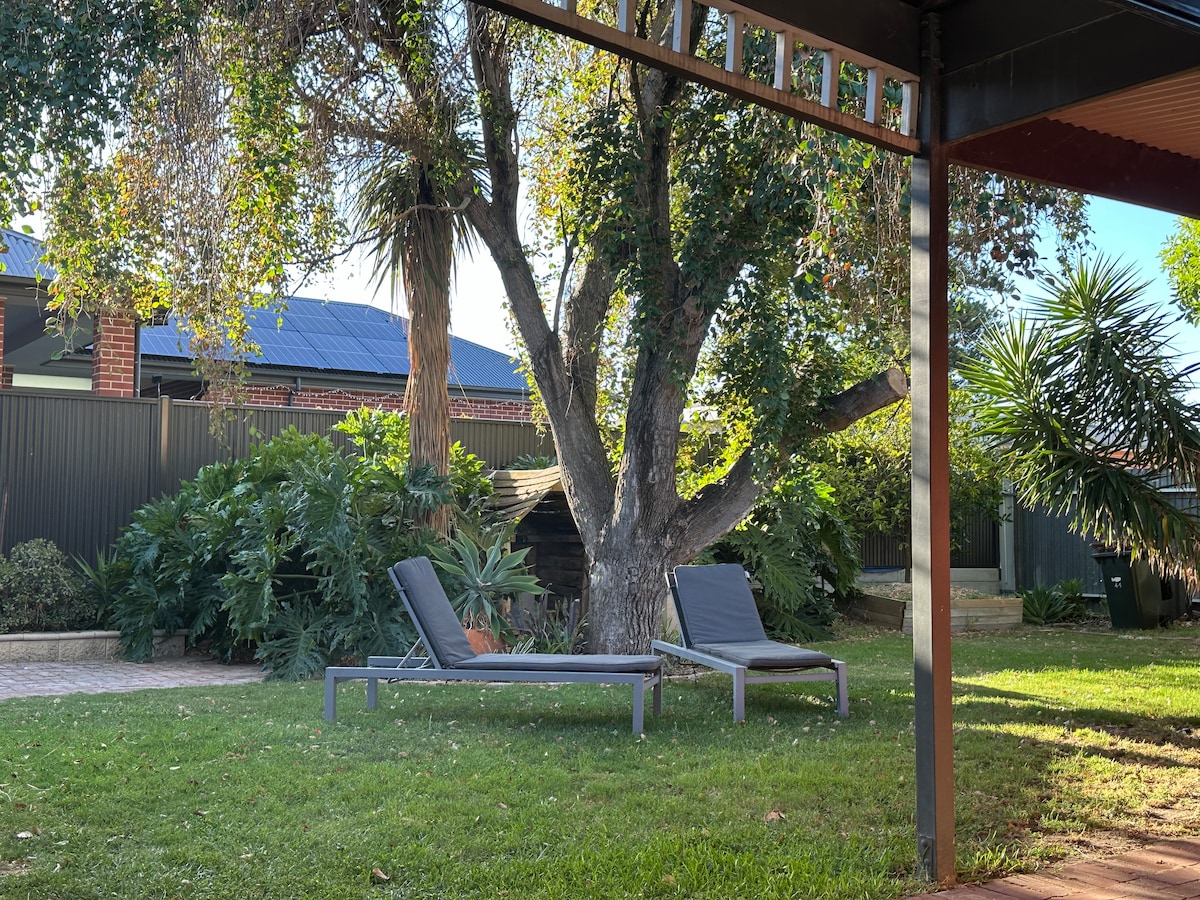Jsme v blízkosti letiště, skvělé pláže, veřejná doprava, restaurace/restaurace, otevřený výhled. Zamilujete si naše super pohodlné postele, čisté, kvalitní povlečení, venkovní posezení na verandě, prostorný obývací pokoj (plynový oheň a FOXTEL), velkou koupelnu, kuchyňský kout (malá lednička, mikrovlnná trouba, toustovač, rychlovarná konvice) a bezpečné sousedství. Jsme ideální pro páry, sólové dobrodruhy, služebně cestující. Tvé ubytování je přední polovina našeho domova - oddělená spojovacími dveřmi. Budeme na místě, možná s pěstounským chrtem.