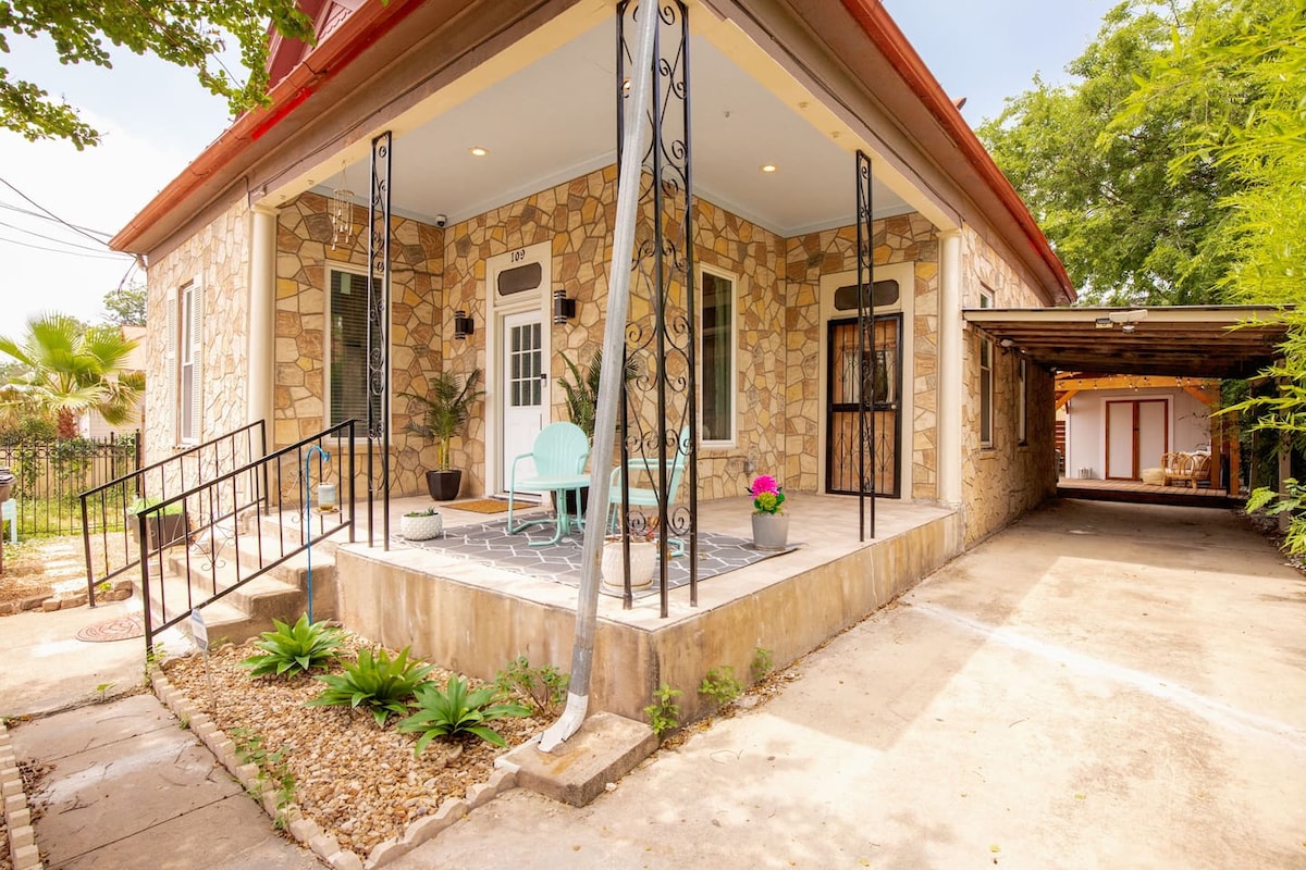 Přestaňte scrollovat! Našli jste ideální místo v San Antoniu. 🤩 Vítej ve svém útulném, historickém útočišti – doslova pár kroků od dění! Jsi v perfektní lokalitě v trendy historické čtvrti Dignowity, což znamená rychlou procházku k: - Alamodome – Historické Alamo a Riverwalk – Kongresové centrum Také v okolí: Tower of the Americas (je vidět z verandy!) a rušná oblast Pearl Brewery (jen kousek autem). Užij si městský život naplno a bez starostí s parkováním!