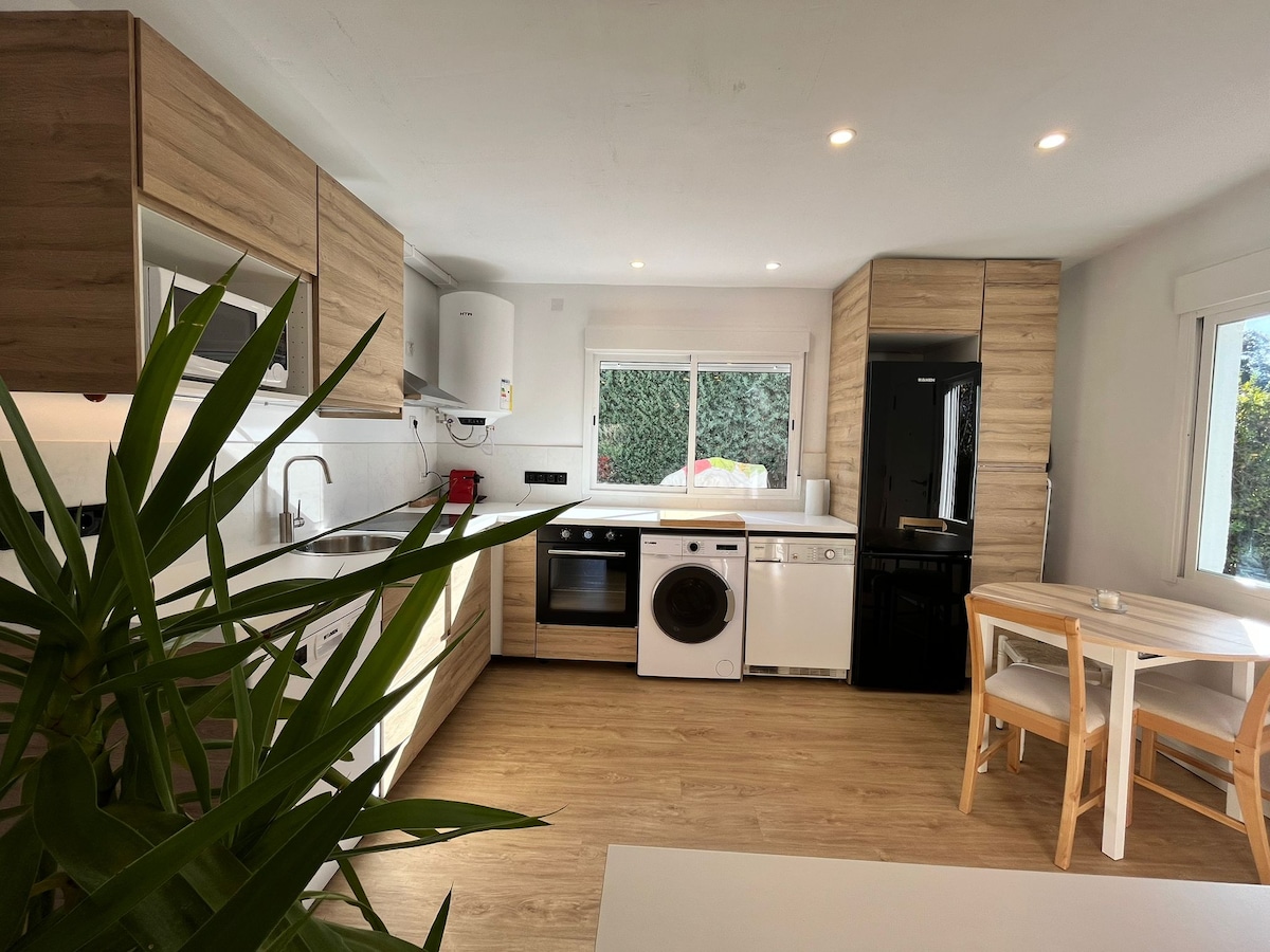 Samostatný dům ideální pro páry a malé rodiny. Parkoviště a soukromá zahrada, nesdílená, veranda a gril Není to jen pokoj, je to krásná chalupa. Obývací pokoj s otevřeným prostorem. Obývací pokoj s krbem na dřevo a chytrým televizorem, jídelna s integrovanou kuchyní, kompletní koupelna, dvojité umyvadlo a krásná ložnice s XXL postelí. V blízkosti výjezdu 375 z dálnice A66. Ideální místo k odpočinku mezi severem a jihem Zeptejte se, zda můžete přijet se svým domácím mazlíčkem. Bazén je 100 metrů daleko a je společný