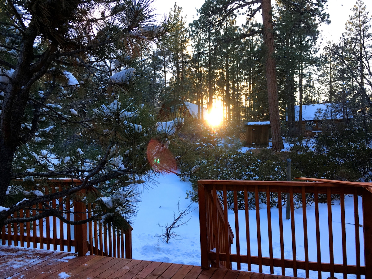 Malá romantická lovecká chata v lese! Tato lovecká chata z roku 1937 byla přestavěna a vybavena moderními vymoženostmi. Obklop se lesem, vychutnej si čerstvý vzduch a probuď se s teplou záři východu slunce. – Klidný a okouzlující zážitek - Plně vybavená kuchyň – Útulné a jedinečné prostory – Jídlo venku pod světelnými řetězy – Večerní posezení u ohně – Méně než 15 minut k jezeru Gregory a 20 minut k vesnici Lake Arrowhead – V okolí jsou také oblíbené turistické a off-roadové stezky!!