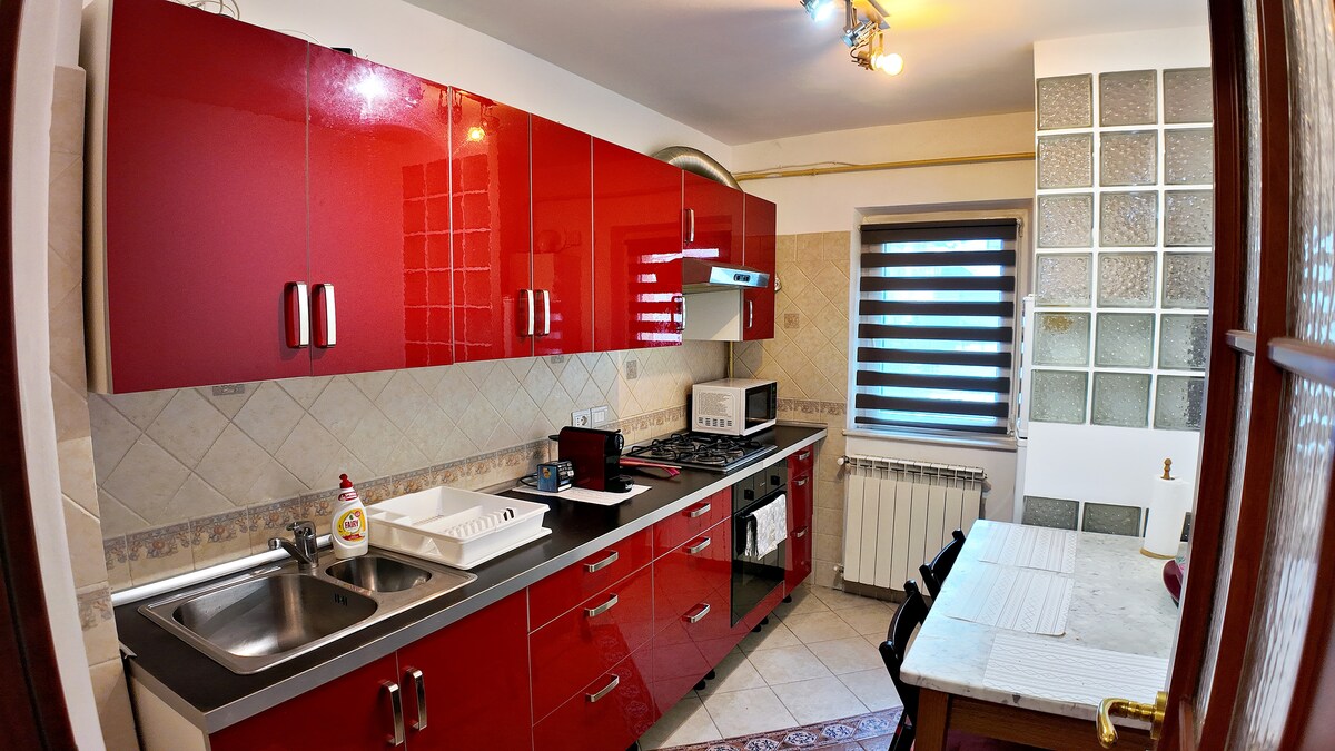 Toto speciální místo je blízko ke všemu, což usnadňuje plánování návštěvy. It is located at 3 minutes walking to the center of Radauti. Byt se nachází v 5patrovém bloku, je moderně zařízen stylově a vybaven vysoce kvalitními věcmi. The view is gorgeous, you can also see the sunrise in the morning.