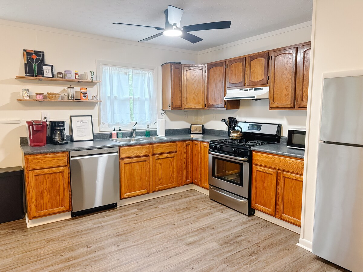 Náš apartmá pro hosty se nachází přímo v srdci okresu Pocahontas County ve Virginii a je ideální pro jeden pár nebo sólo dobrodruha. Odpočiň si. Obnov se. Znovu se spoj. Je to skvělý základní tábor pro všechna tvoje horská dobrodružství. Vychutnej si ranní kávu na verandě, zatímco plánuješ denní aktivity. Tento útulný prostor nabízí otevřený půdorys s kuchyní, manželskou postelí, koupelnou se sprchou, obývacím a jídelním koutem. Kombinace rustikálního šarmu s moderním vybavením vám zajistí, že si pobyt v Sunflower Cottage určitě užijete 🌻