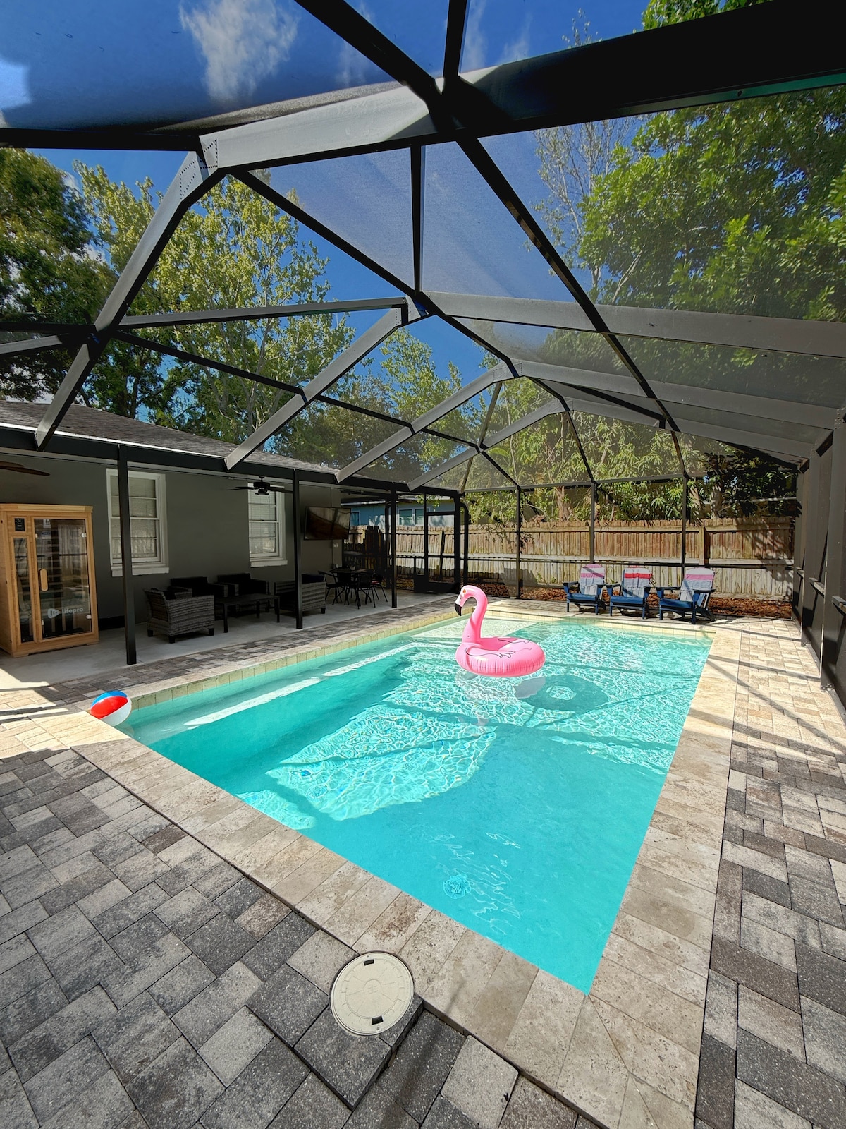 Vytvoř si v tomto jedinečném domově vhodném pro rodiny spoustu nových vzpomínek! Tvůj rekreační dům byl právě kompletně zrekonstruován. Všechno (a tím myslíme všechno) je nové! Odpočiňte si a detoxikujte se ve vzácné sauně pro 4 osoby! Užijte si OBROVSKOU VÍŘIVKU pro 6 osob. Vychutnejte si bohaté floridské slunce u bazénu pod velkou 27stopou pergolou ve stylu resortu. Pouze 3 míle od nejbližší pláže 🏖️ 300 stop od stezky Pinellas!! NEJRYCHLEJŠÍ DOSTUPNÁ WIFI – 668 mbp Máš dotaz?? Pošli mi zprávu!