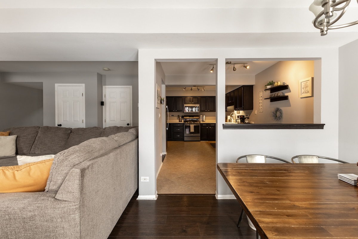Náš dům se 4 ložnicemi a 2,5 koupelnami je ideální pro skupinu přátel nebo rodinu, která hledá čisté a moderní místo v nádherné čtvrti. Je tu spousta místa pro pohodlné spaní pro 10 osob (4 lůžka), stejně jako 4 chytré televizory, terasa s pergolem, vestavěný gril a ohniště, velký oplocený dvorek, herna (s ping pongem a dalšími hrami), vířivka, kancelářský prostor a mnohem více. Skvělý přístup do Chicaga po dálnici I-290, protože je přímo na západ od centra!