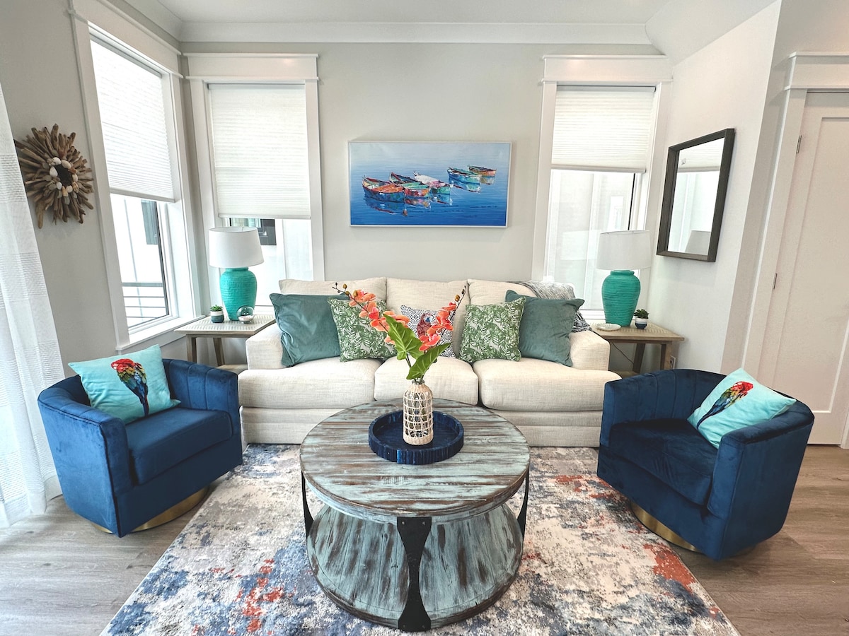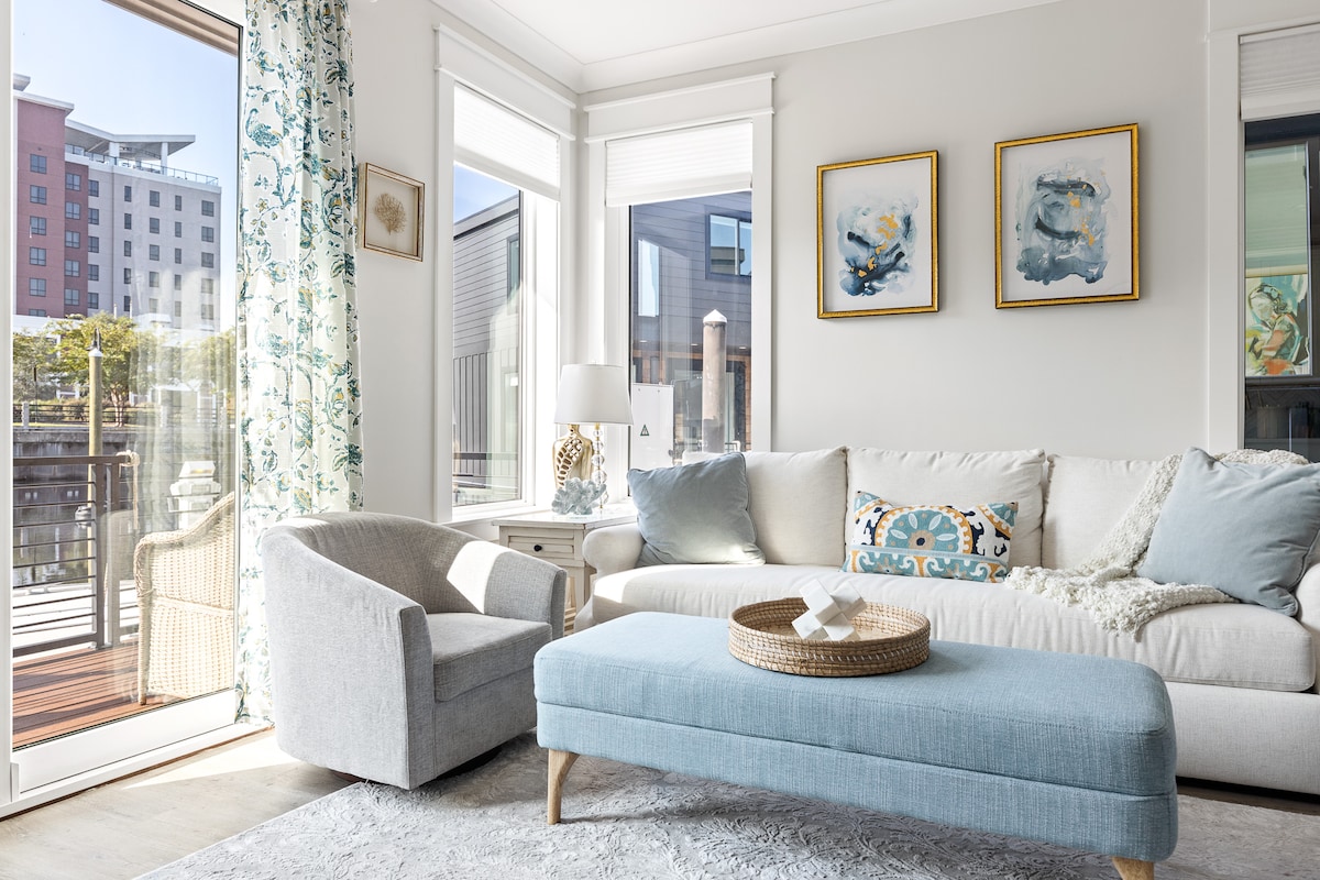 Vítej v The Cove Riverwalk Villas, nejunikátnější komunitě prázdninových pronájmů ve Wilmingtonu! Haven, vila vhodná pro domácí mazlíčky, nabízí nádherný výhled na přístav, který vás naplní modrým myšlením. Tento příjemný prostor nabízí pohodlnou rozkládací pohovku a vyhrazený stůl ve druhém patře, ideální pro skupiny účastnící se akcí v nedalekém Live Oak Bank Pavilion. Ať už se jedná o koncert nebo o odpočinek a užívání si klidného prostředí, Haven nabízí relaxační oázu pohodlí a pohody na vodě.