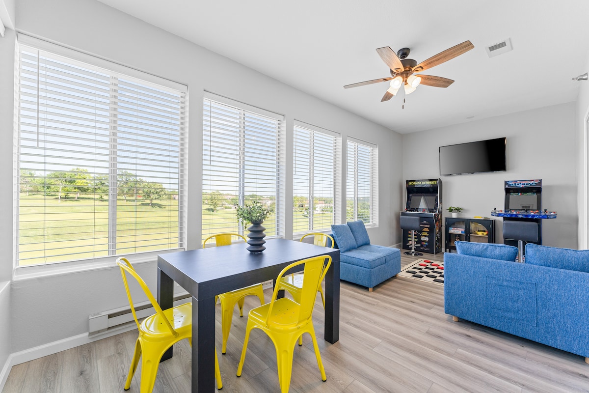 🛑 Tressa říká: „Přestaňte hledat a rezervujte si to!“Váš 5hvězdičkový únik z Bransonu! ŽÁDNÉ schody. ☕ Ranní rituál bez spěchu: Začni svůj den kávou v zimní zahradě. Pokochejte se ranním světlem dopadajícím na jezero a najděte okamžik fascinujícího klidu. Vybavení: • Kavárna • Luxusní manželské postele • 4 chytré televize Roku • Rychlá wifi • Arkádová hra Dokonalá lokalita! 🏞️ Získáte bezvadné útočiště s dokonalým rozdělením: klid a ticho, a přitom jen 12 minut od Silver Dollar City a 8 minut na Strip.