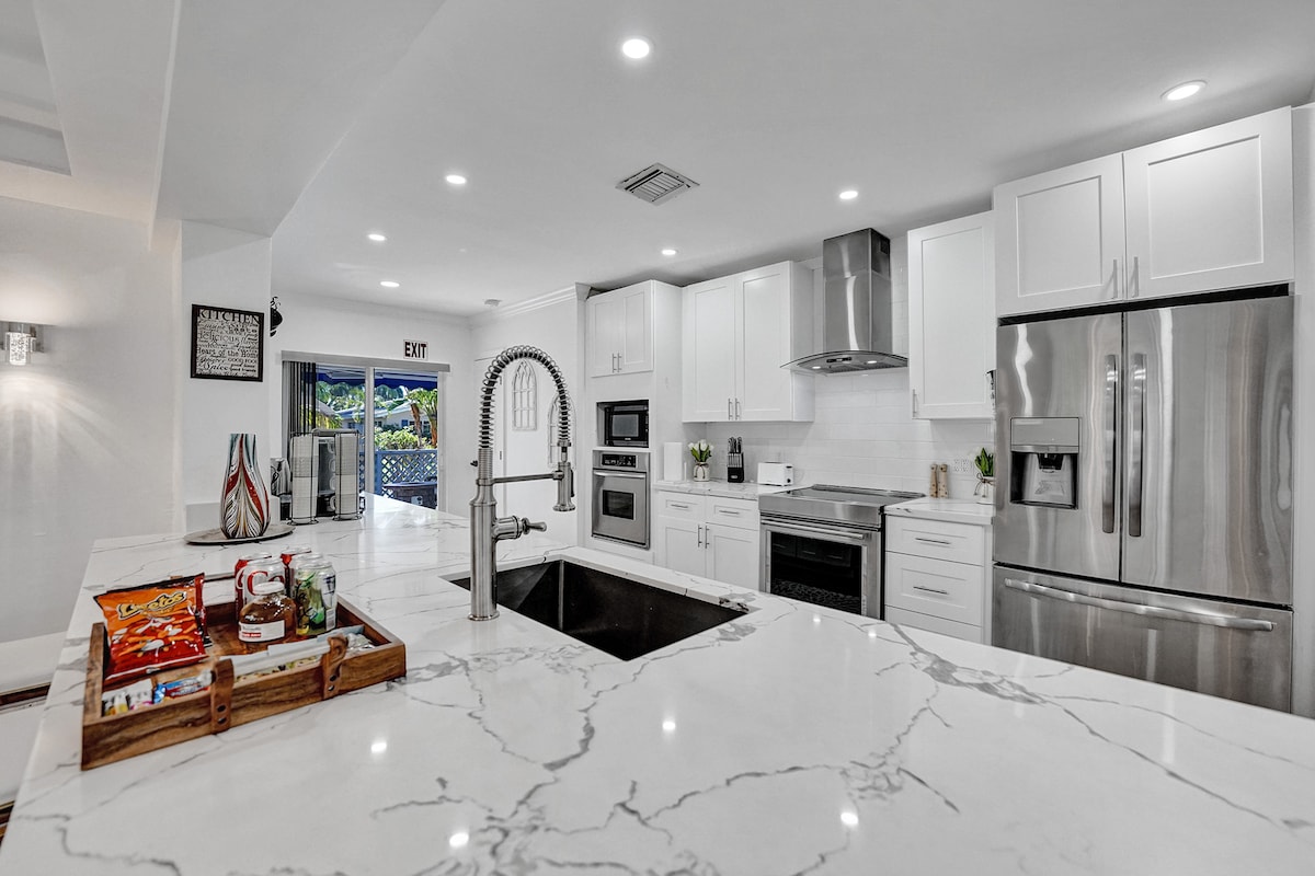 Uteč do tohoto rodinného domu ve Fort Lauderdale. Tato stylová nemovitost nabízí dokonalou kombinaci luxusu a pohodlí a nachází se v praktické vzdálenosti 10 minut od letiště a 11 km od pláže. Uvnitř si užij elegantní, příjemné barvy s prostornými obytnými prostory a lákavým interiérem. Vyjdi ven do krásně upraveného dvorku s vlastním vyhřívaným bazénem, venkovní jídelní kout pro rodinu a dokonce i nějaké cornhole, zatímco čekáš na své hotdogy z grilu! Tvůj ráj čeká!