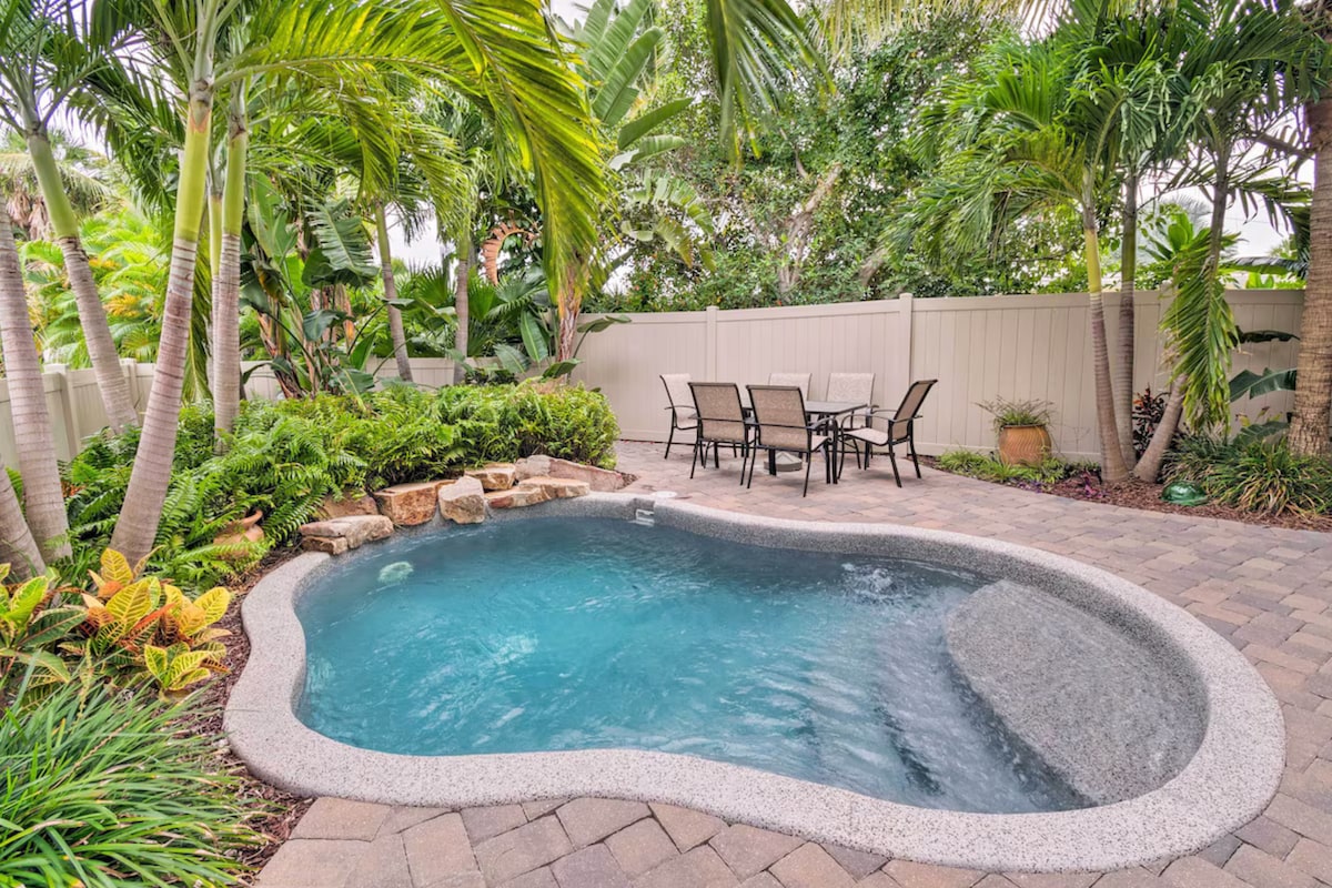 Vítejte ve staré Floridě „The Starfish Cottage“. Užijte si soukromý vyhřívaný bazén s bujným tropickým prostředím. Uvnitř najdete otevřený obytný prostor, kde jídelna, kuchyně a obývací pokoj byly nově zařízeny luxusními pohovkami s hlubokými sedadly a křesly, dřevěné podlahy přispívají k šarmu. K dispozici je čisté povlečení, osušky a plážové osušky spolu se základními toaletními potřebami. Dekorace byly shromažďovány v průběhu času a získány od místních umělců pro jedinečný starý floridský styl.