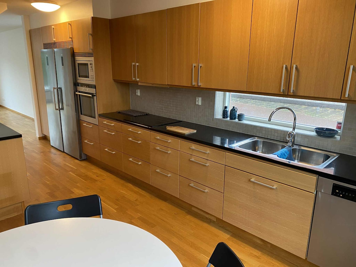 4 room 92 m2 apartment w/ 3 bedrooms w/ south facing balcony located in harbor in the charming canal district. Nádherný výhled na kanály i přístav je odlišuje od ostatních bytů. - 3 manželské postele ve 3 samostatných pokojích - Metro 25 minut na letiště / 6 minut do centra - Vhodné pro rodiny/skupiny max. 6 osob. - Taxi na letiště: One way is 30 € / 15 min - Parkování 350 m daleko - E-car: Nabíjení není možné – Upozornění: Toto je můj soukromý domov s duší a osobními věcmi