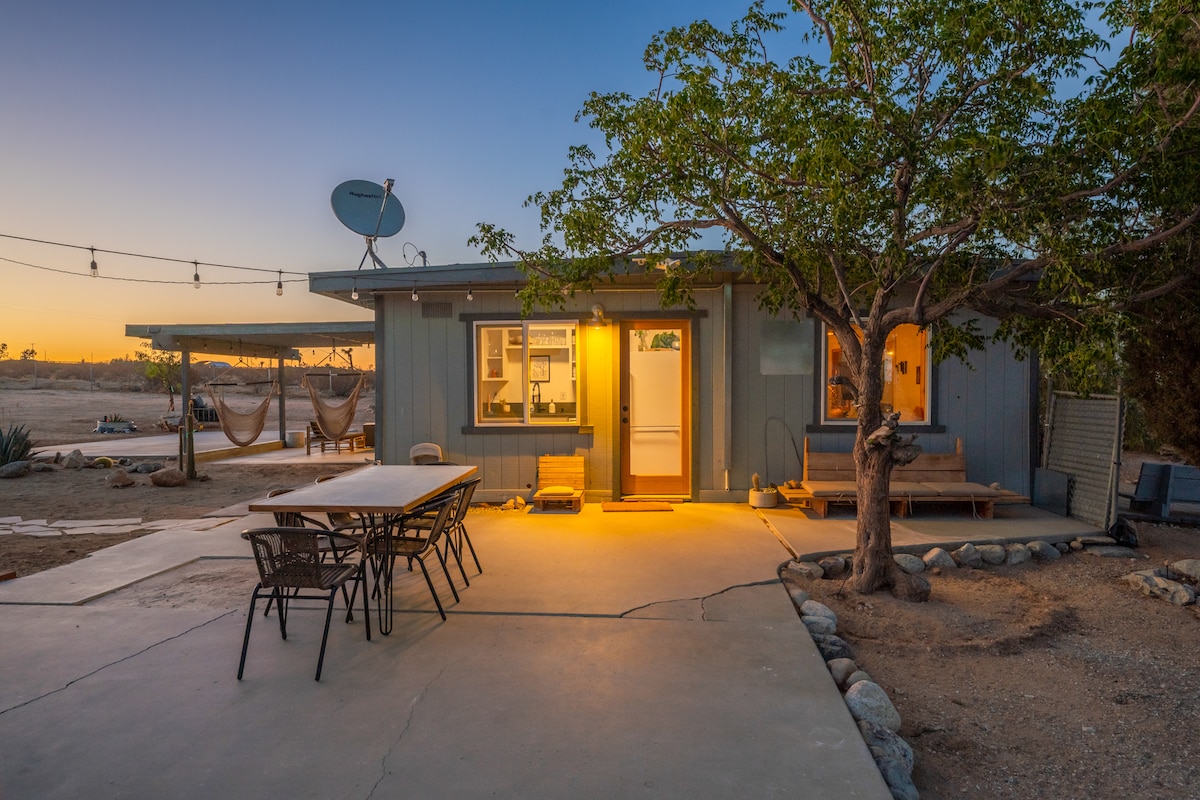 Přijeďte si odpočinout obklopeni zralými stromy Joshua ve své relaxační oáze v poušti. Post House byl kompletně přestavěn s vlastními vestavěnými prvky. Tento dům s jednou ložnicí a jednou koupelnou má všechny designové detaily pro nejnáročnějšího cestovatele. Uvelebte se u vnitřního krbu, odpočiňte si v houpacích sítích a užijte si výhled, vyjděte ven a osprchujte se nebo se vykoupejte pod hvězdami; možnosti jsou nekonečné.