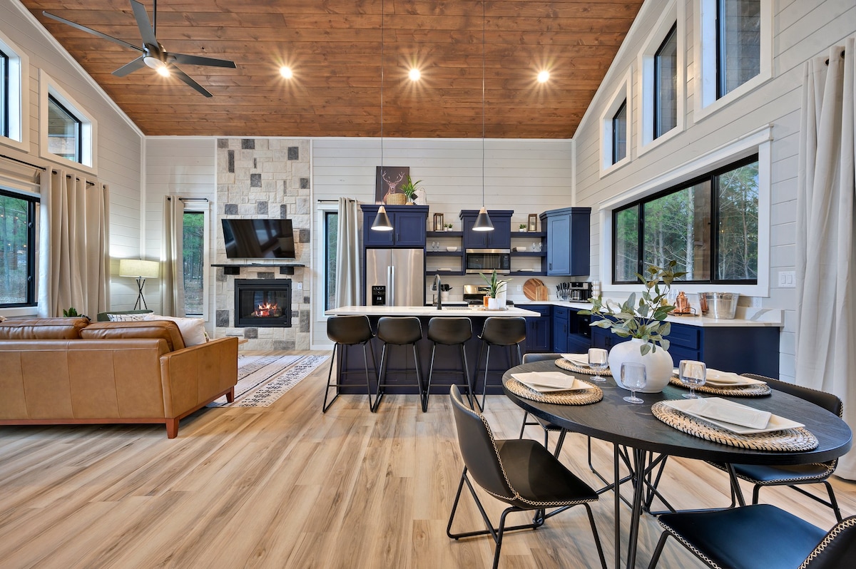 Tuklo Tiak, což v jazyce Choctawů znamená „Dvě borovice“, je luxusní chata zasazená mezi borovice, která nabízí dokonalé útočiště pro páry. Díky vnitřním i venkovním krbům, vířivce, sauně a ohništi poskytuje relaxaci a propojení. Nachází se mezi Broken Bow a Hochatownem a nabízí soukromí a klid, přesto je jen pár minut od restaurací, obchodů a atrakcí. Zažij klidný únik, který budeš chtít znovu navštívit, s každým detailem navrženým pro pohodlí a klid – ideální pro vytváření trvalých vzpomínek.
