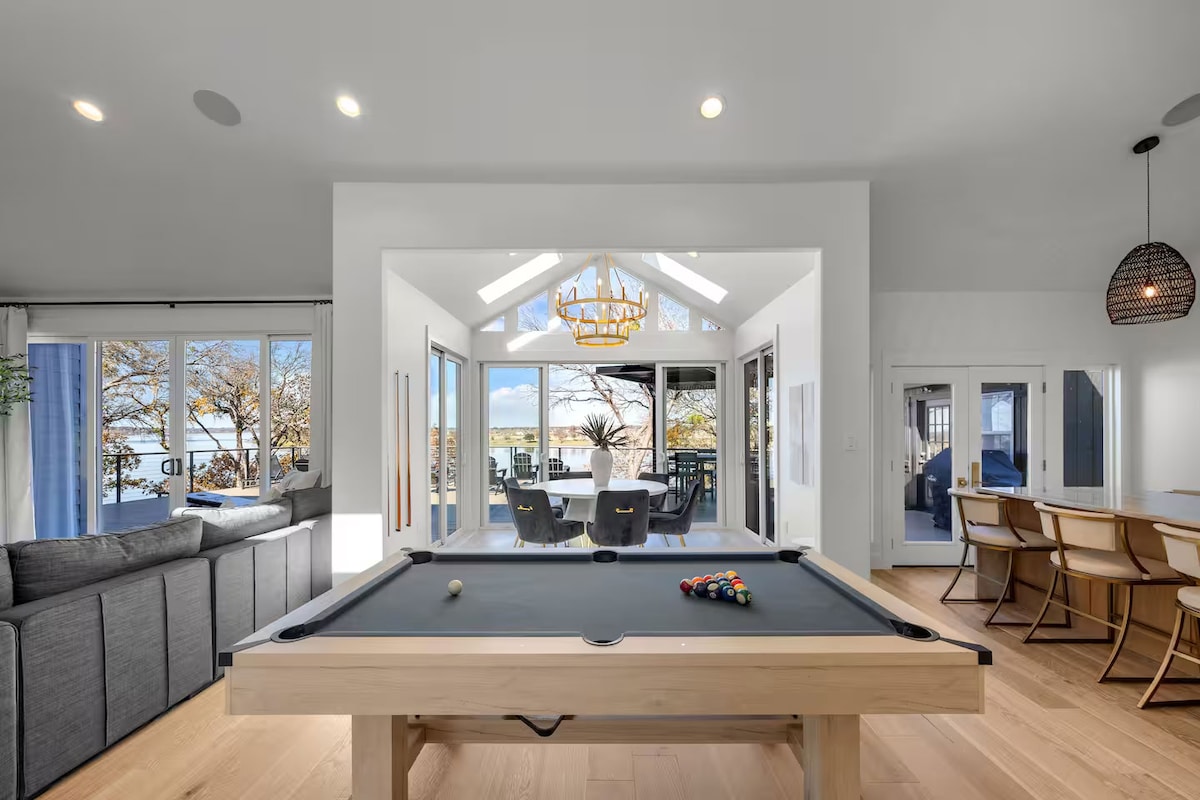 Come enjoy stunning views! This private home sits on almost an acre of waterfront property and includes a private dock, pool, hot tub, and outdoor kitchen. Inside, enjoy relaxation at its finest including game room, entertainment room with seating for 20+. Smart TV's in every living area and bedroom. All this within 3 miles of the famous Granbury Square. Also have adjoining tiny home available to rent and add 4 additional guests https://www.airbnb.com/l/rD4kTJAO