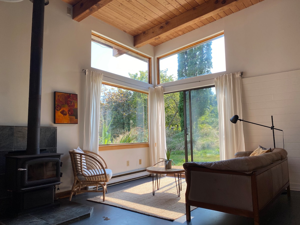 V klidné čtvrti se nachází krásný, soukromý, klimatizovaný srub s klenutým stropem a prosklenou přední částí s výhledem na Baynes Sound a hory ostrova Vancouver. Samostatně stojící se soukromým vchodem. Manželská postel v podkroví, jednolůžko v přízemí. Soukromá koupelna se sprchovým koutem. Soukromý přístup na pláž. V blízkosti trajektu, kousek pěšky do místní vesnice. Upozorňujeme, že tato nemovitost není vhodná pro osoby s problémy s pohyblivostí nebo malé děti. NEÚČTUJEME SI POPLATKY ZA ÚKLID.