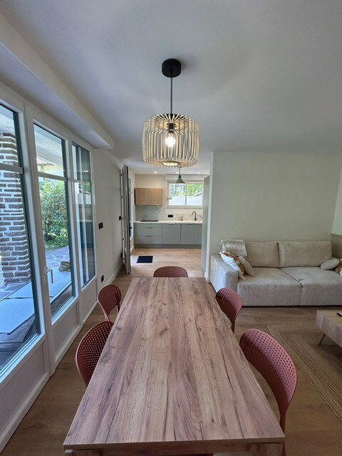 60 m2 byt se nachází v samém srdci města Seignosse, v klidné slepé ulici. Všechny potřebné služby se nacházejí v okolí (pekárna, obchod s potravinami, kadeřnictví atd.). Jakmile vstoupíte do bytu, okouzlí vás jeho světlo a klid. Obývací pokoj má výhled na soukromé jezírko, jehož barvy se mění podle denní doby. Na kryté terase o rozloze 13 m2 si budete moci vychutnat toto idylické prostředí při jídle, snídani... nebo aperitivu.