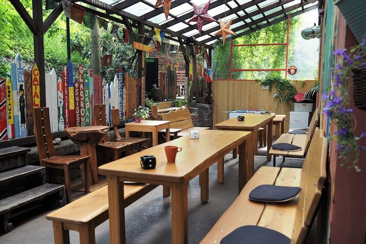 Přijeďte s kamarády do zelené oázy v centru Prahy! Nejsme obyčejný hotel, ale legendární místo s jedinečnou atmosférou, které je už 20 let skvělým výchozím bodem pro objevování Prahy. S Vašimi kamarády si můžete dát pivko na naší rozkvetlé terase, něco si ugrilovat na venkovním grilu, nebo využít společenskou místnost a plně vybavenou kuchyň. Turisty přeplněná Praha se přeci jen stala na nějaký čas minulostí, tak proč toho nevyužít!