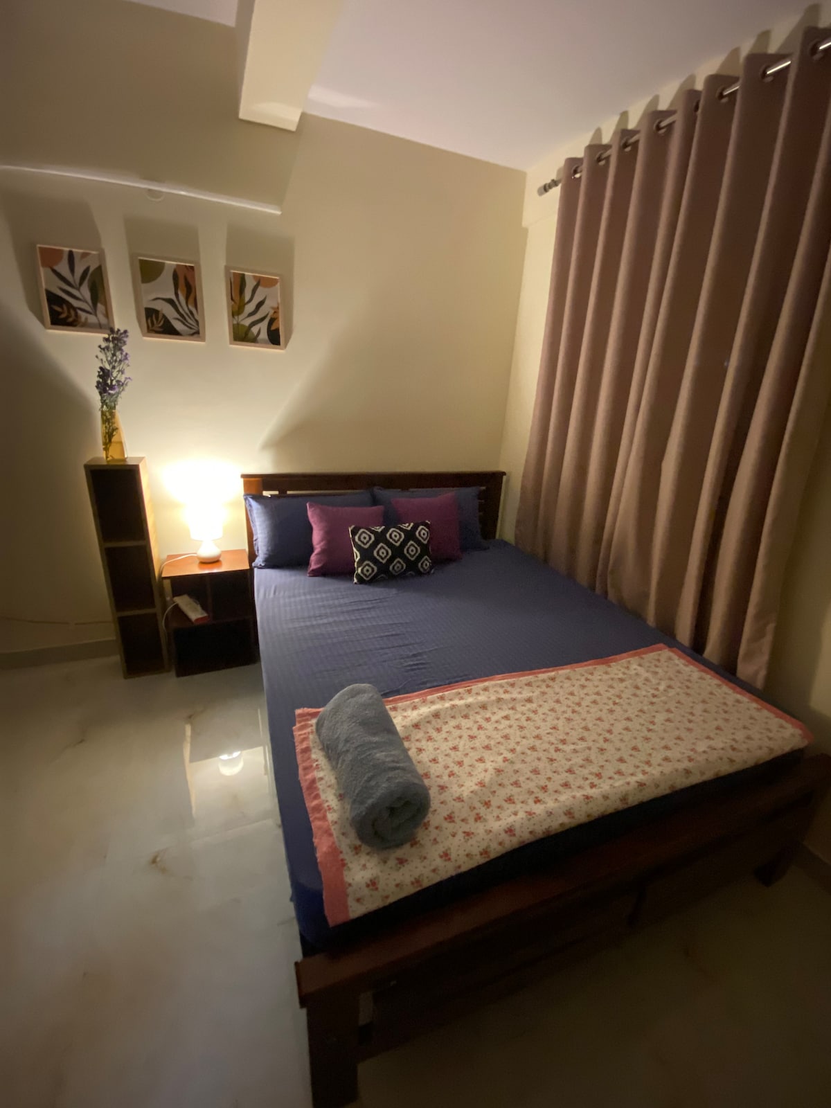 Vítejte v našem zbrusu novém, prostorném bytě 1-BHK, ideálním pro páry a rodiny, které hledají pohodlí a komfort. Ložnice se může pochlubit manželskou postelí a měkkou ortopedickou matrací pro klidný spánek. Odpočiňte si ve velkém obývacím pokoji s 43palcovou chytrou televizí, bleskově rychlou Wi-Fi a vyhrazeným pracovním prostorem. K dispozici je také velmi čistá koupelna s nezbytnostmi. Plně vybavená kuchyně obsahuje základní ingredience, vysoce kvalitní spotřebiče a nádobí pro vaše kulinářské dobrodružství.