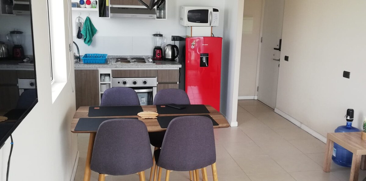 Užij si jednoduchost tohoto klidného a centrálního ubytování. Plně zařízený k odpočinku v přístavu Huasco, 5 minut od Playa Grande a Faro Monumental. V kondominiu je parkování zdarma a v okolí najdete minimarket, hřiště a skatepark, kde se budou bavit ti nejmenší. 10-15 minut od centra města a supermarketu.