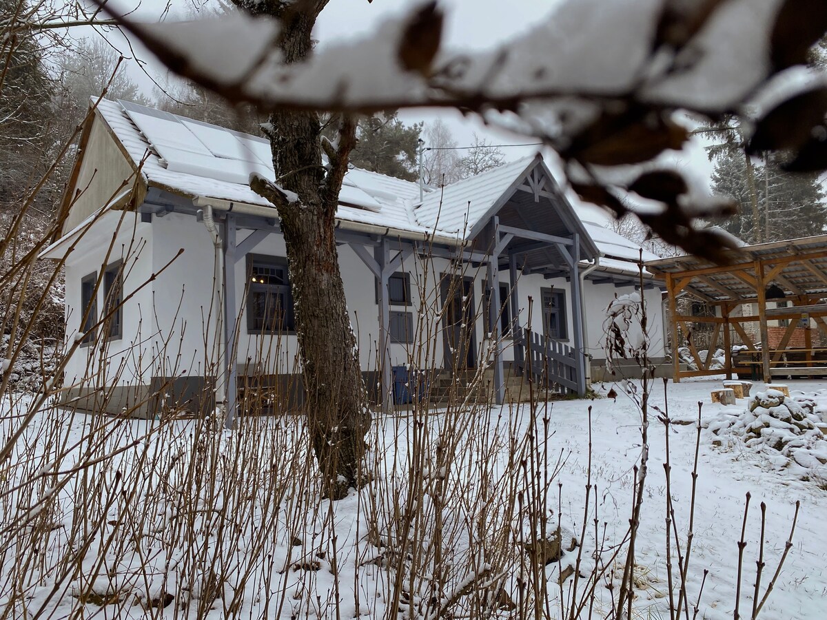 Enjoy the Hungarian countryside in this private guesthouse situated on a vineyard in the Wine Region of Mór. Casa Quint is located halfway between Budapest and Lake Balaton, 20 km from the most historical crowning city of Hungary Székesfehérvár. Our freshly renovated guesthouse offers a perfect place to unwind and recharge. Gives you a real cabin-in-the-woods experience. Ideal for 2/4 people with a large terrace, fully equipped kitchen, air conditioning, sauna, wifi, Netflix, and wine cellar.