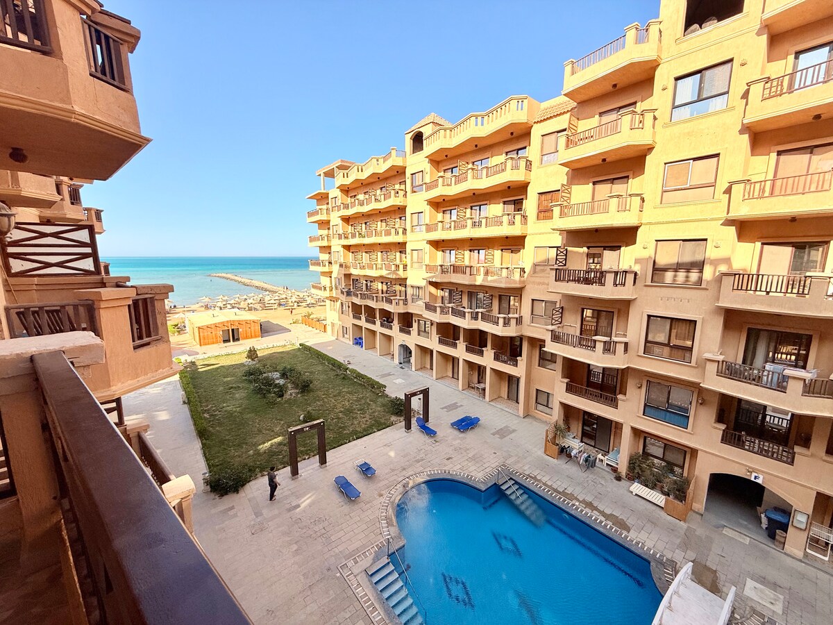 Dovolená v Hurghadě – užijte si pobyt v moderním, přímořském, super prostorném 90 m² apartmánu s 1 ložnicí, otevřenou kuchyní a obývacím prostorem, plně zařízeném se vším nezbytným pro pohodlný pobyt v Hurghadě. Velký balkon vám poskytne nejlepší přímý výhled na moře/bazén a je ideálním místem pro sledování kouzelného východu slunce. Soukromá pláž, lehátka, dva velké bazény, zelená zahrada, Wi-Fi 4G internet, 24/7 zabezpečení a venkovní parkoviště jsou zahrnuty. **Cena nezahrnuje účty za vodu a elektřinu.