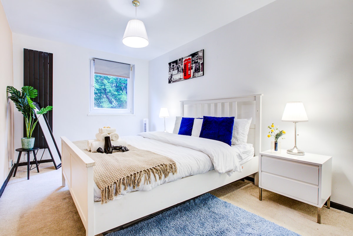 Útulný a světlý klenot ~ výhled na park Battersea ~ manželská postel