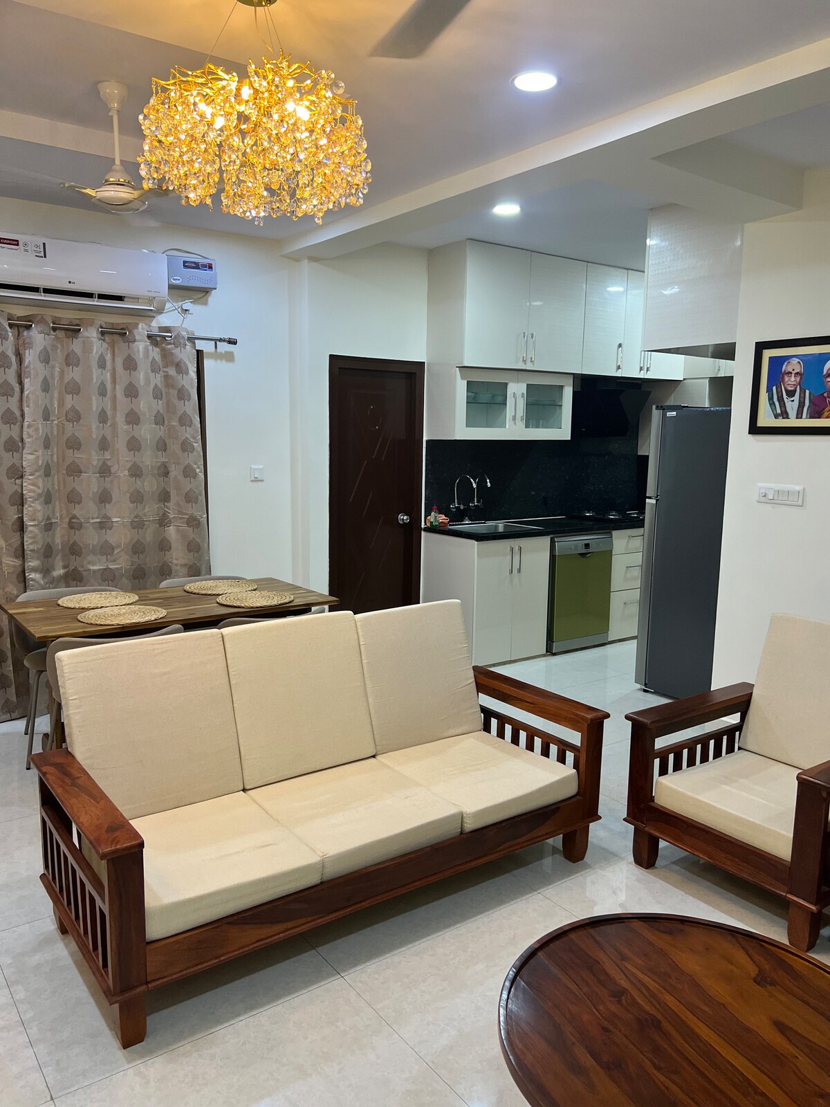 Moderní 2BHK byt AC Velký obývací pokoj/jídelna/kuchyně