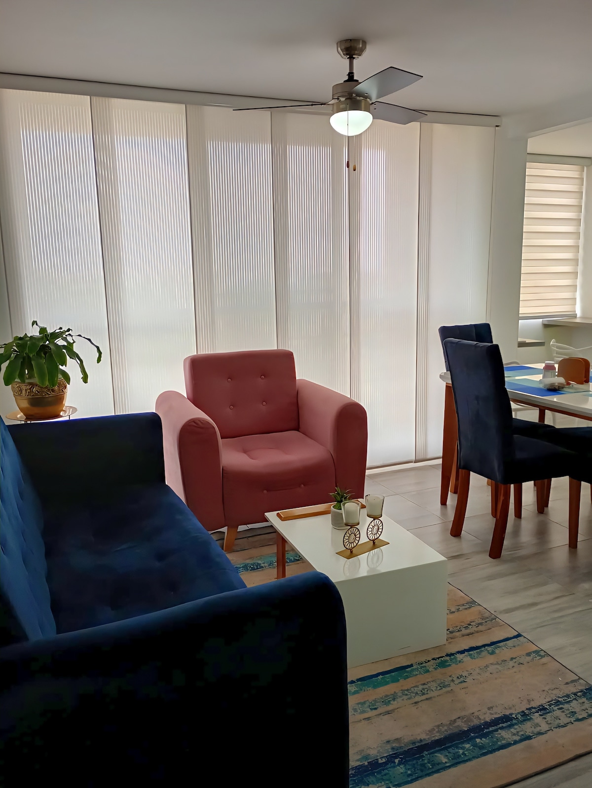 Apartamento moderno de 53 m² totalmente amoblado en zona exclusiva de Ibagué. Cuenta con 1 habitación con baño privado y cama matrimonial, 1 sofá cama amplio, estudio, cocina equipada, balcón con vista, baño social y zona de ropas. A solo 2 cuadras de Multicentro y 8 min de La Estación. Disfruta zonas comunes: piscinas, sauna, gimnasio, BBQ, teatro, juegos infantiles, parque para mascotas, billar y squash. ¡Confort total!