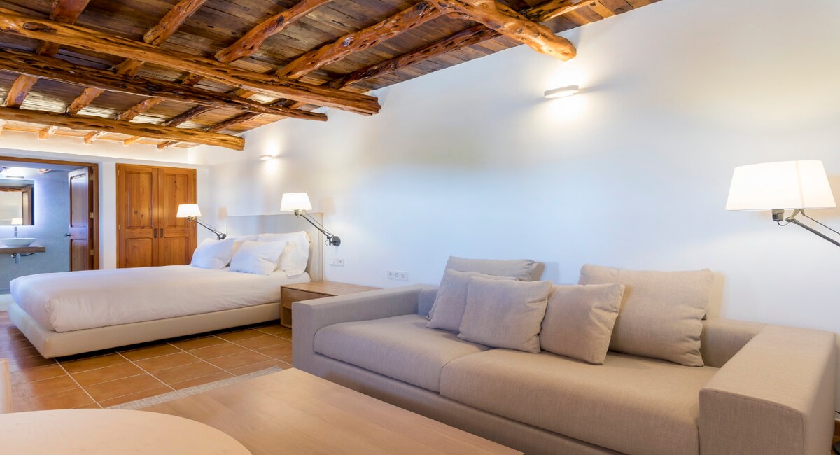 Fantastická vila s bezkonkurenční polohou v klidném a bezpečném prostředí v srdci ostrova. Užij si autentického ducha Ibizy v autentickém 100 let starém domě payesa, aniž bys obětoval/a veškeré pohodlí, které nabízíme. Původní a typické dispoziční uspořádání domu bylo respektováno. Má kapacitu pro šest osob, takže má tři dvoulůžkové ložnice s vlastní koupelnou a koupelnu zdarma.