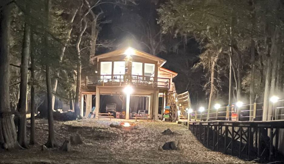 Moderní, plně vybavená chata na 24 soukromých zalesněných akrech, 500 stop nábřeží řeky Suwannee s přístavištěm. V srdci sladkovodních pramenů na světě. Přístaviště 2 míle proti proudu od mostu CR340 Rock Bluff. 2 nedaleké lodní rampy. Chata na břehu řeky je vzdálena 3 minuty jízdy po soukromé cestě lesem; otevřeno pro většinu vozidel, golfové vozíky. Tato nemovitost je ideální pro rodiny a skupiny až 8 osob, které touží po venkovním dobrodružství, spoustě prostoru a moderním vybavení za skvělou cenu. .