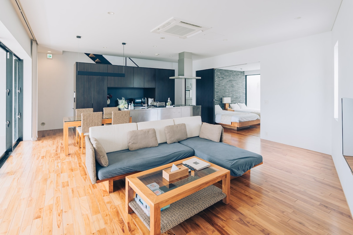 Vítejte ve vile „SABOTEN“ na ostrově Sesokojima v severní části Okinawy! Jedná se o soukromou vilu, kde se můžete nechat unést konceptem „okinawského, ostrovního času“ Jedná se o soukromou vilu, která je omezena na jednu skupinu denně. ✦Lokalita Nachází se na ostrově Sesokojima, který je spojen mostem s hlavním ostrovem Okinawy a který je vzdálen 90 minut jízdy autem po dálnici z letiště v Naha. Nachází se na ostrově Sesokojima, který je obývaný a má obvod asi 8 km. Je spojen mostem s hlavním ostrovem Okinawy. V okolí je spousta oblíbených turistických míst, jako je akvárium Churaumi v Okinawě, zřícenina hradu Nakadžin či aleje stromů Fukugi v Bise, která je zapsaná na seznamu světového dědictví. Když je venku pěkné počasí, určitě si užijte pláž! Informace o gastronomii a turistických atrakcích najdete v průvodci na stránce profilu! Prosím, použijte je jako referenci pro svou cestu♪ ✦Střešní terasa Na střeše vily se nachází střešní terasa s výhledem na oceán a most Sesokutai. Užijte si zde blažené chvíle. Vychutnejte si zde snídani nebo odpolední čaj a v noci si užijte pozorování hvězdné oblohy☆. ✦Parkoviště Před vchodem je možné zaparkovat 2 auta. ✦Vybavení Obývací pokoj: velká televize Kuchyně: lednice, mikrovlnná trouba, toustovač, rychlovarná konvice, pánve, hrnce, nádobí, příbory, sůl, pepř, olivový olej atd. Koupelna: šampon, kondicionér, tělové mýdlo, zubní kartáček, zubní pasta, vysoušeč vlasů, prací prášek