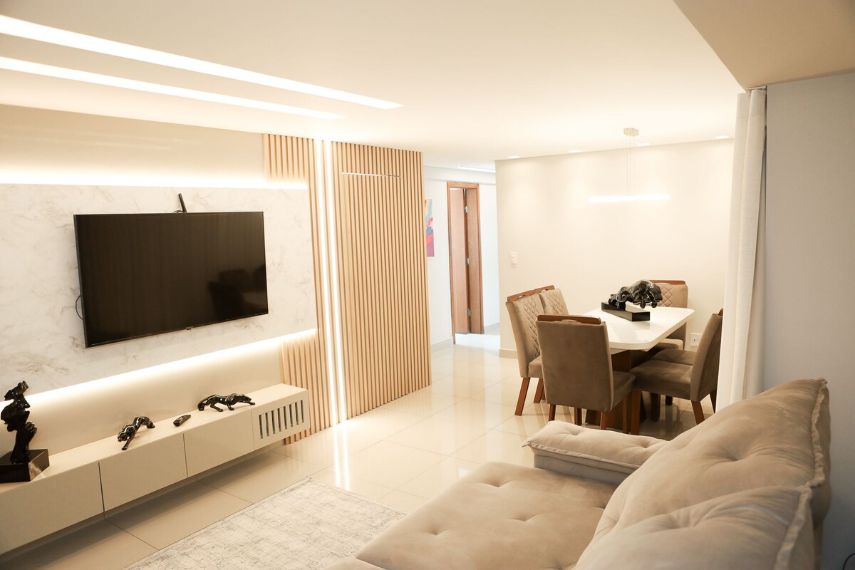 Skvělá poloha v čtvrti Planalto poblíž centra Divinopolis. Moderní a sofistikované vybavení, nový a pohodlný nábytek. 1 parkovací místo, 2 ložnice, z nichž jedna je koupelna, a společná koupelna, 2 manželské postele, WiFi, TV. Klidné sousedství, nový a bezpečný byt. K dispozici je: ložní prádlo, ručníky, kompletní kuchyně. Přihlaste se automaticky do bytu pomocí bezpečnostního hesla a klíče. Uzavřený kondominium s velmi přísnou vrátnicí. Dodržujte prosím pravidla.