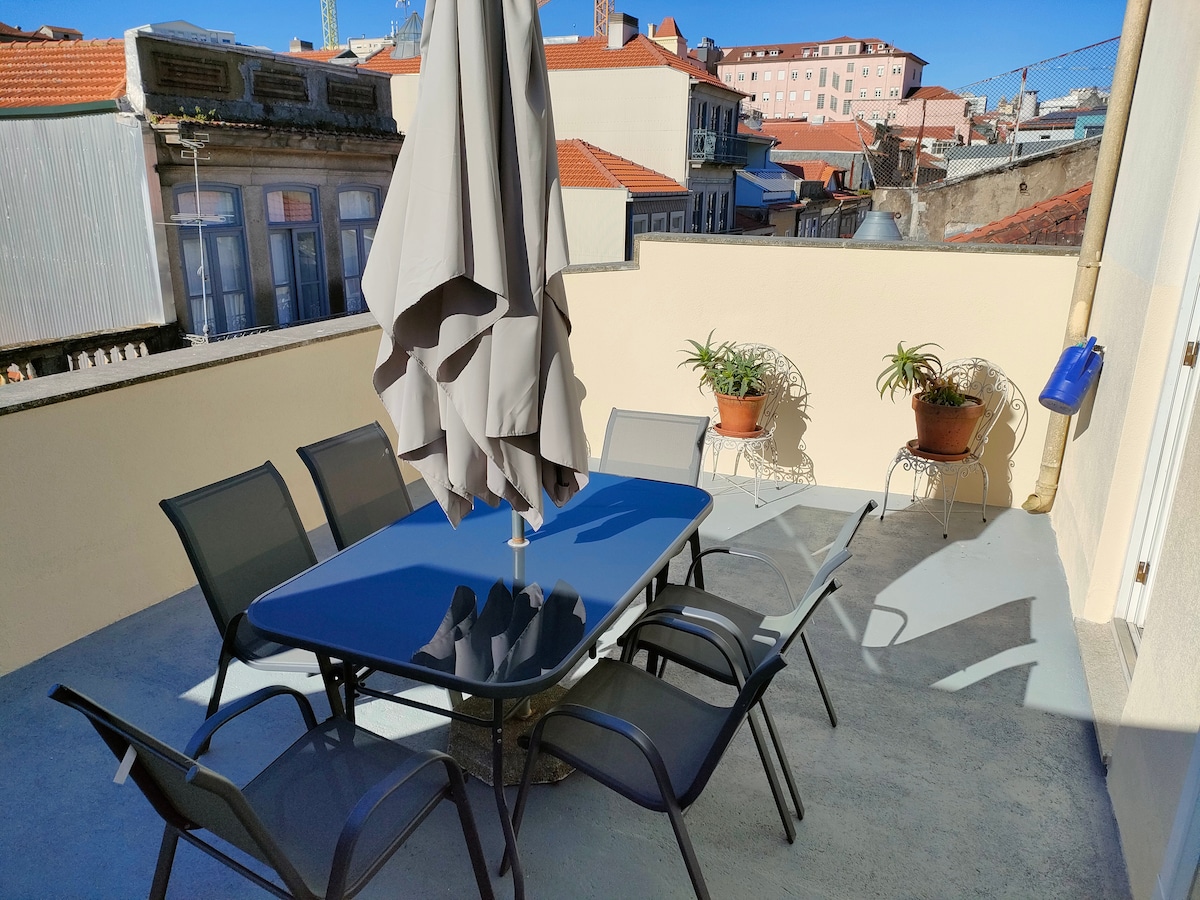 Byt se střešní terasou v centru Porta