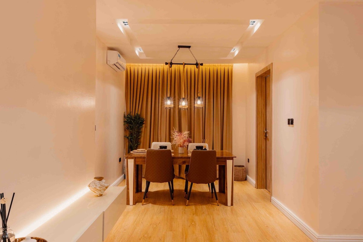 Zažij luxus v tomto prostorném a stylovém apartmánu se dvěma ložnicemi, bazénem, posilovnou, Wi-Fi Starlink, PS5 a krásně navrženými interiéry. Budova nabízí nepřetržité napájení a kuchyň na místě, kde si můžeš objednat čerstvě připravená jídla doručená až ke dveřím. Ideální pro páry, rodiny, služebně cestující nebo skupinové výlety s přáteli, kteří hledají pohodlí a sofistikovanost v srdci Lekki Phase 1.