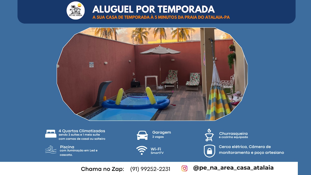 Vezměte celou rodinu na toto skvělé místo s dostatkem prostoru pro zábavu. VYNIKAJÍCÍ dům v plánované čtvrti VALLE DO SAL 2! 4 pokoje, VŠECHNY KLIMATIZOVANÉ, 3 velmi prostorné apartmány, všechny apartmány s elektrickou sprchou, bazén, gril, bar s nápoji, kulečník, velká kuchyně, SKVĚLÁ LOKALITA v Atalaia! Méně než 1 minutu od pláže Atalaia a pláže FAROL VELHO a NEJEZDÍ BLITZ DETRAN! Pronájem na víkendy, svátky a sezóny!
