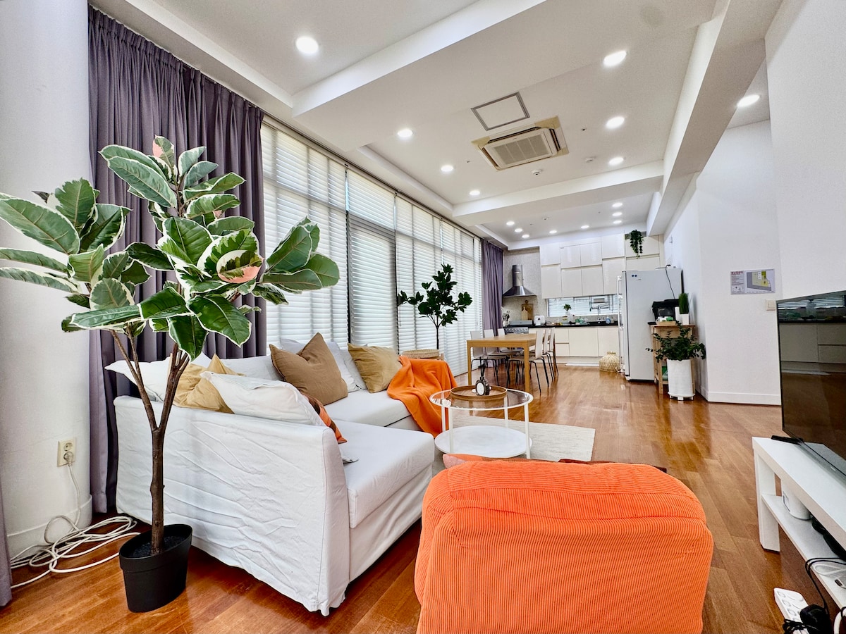 Luxusní střešní byt v centru Jongno-gu Soul. Dvoupodlažní jednotka s nádherným výhledem, velkým balkonem a moderním nábytkem. Toto je VZÁCNÝ NÁLEZ v SOULU! Jen 5 minut od linek metra 3 a 5 – ideální pro objevování Soulu. Projděte se do paláce Kjongbokun, poblíž chrámů, paláců a historických čtvrtí. Snadný přístup do Dongdaemun Design Plaza, tradičních ulic Insadong, trendy kavárenských uliček a rušných ulic Hongdae.
