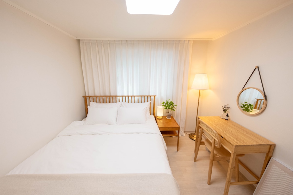3 minuty od stanice Hongik University / útulné ubytování v teplém prostředí / 2 pokoje, 3 lůžka / vysokorychlostní Wi-Fi zdarma / Jun House 2