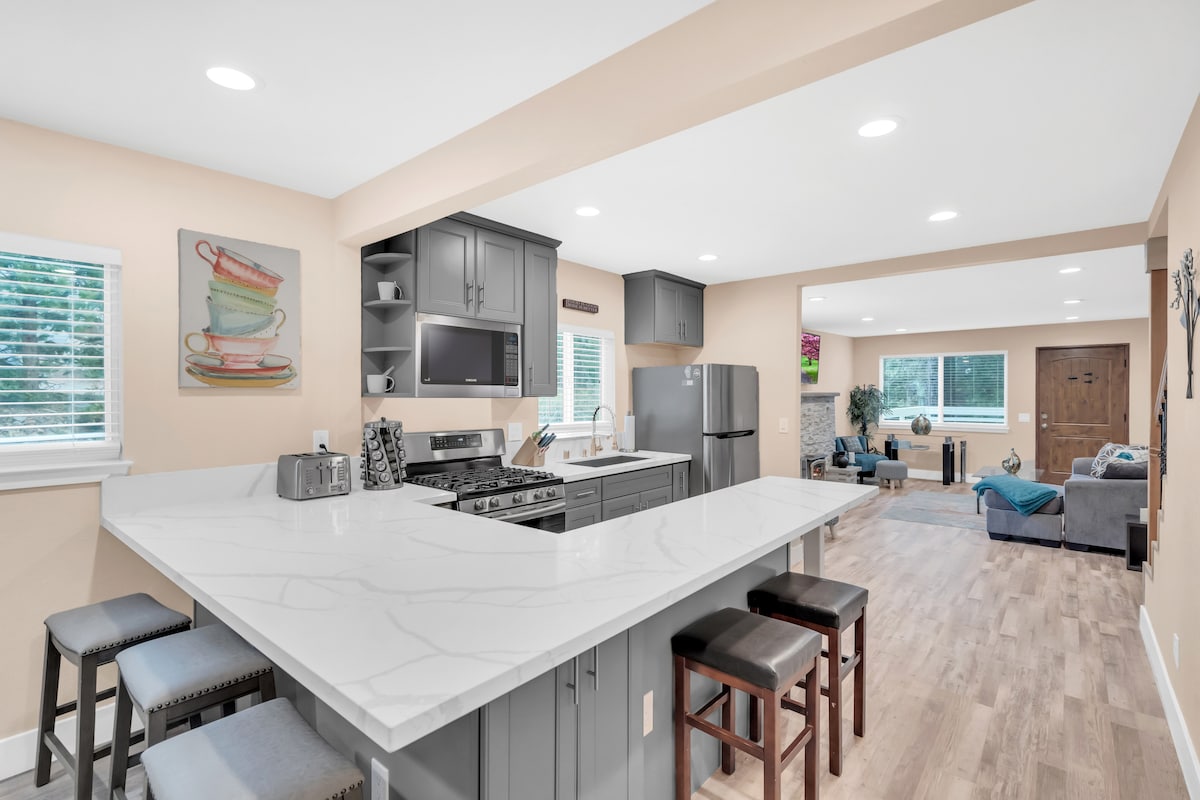 ☀️ 2 bloky od severního pobřeží jezera Tahoe 🛶 Bezplatný přístup ke kajakům, paddleboardům, záchranným vestám, vozíkům a kempinkovým židlím 🏕 Plně přestavěný dům ve tvaru A ze střední poloviny století se 3 ložnicemi 🍳 Gurmánská kuchyně s kuchyňskou linkou Wolf Range + prémiové spotřebiče + plně zásobené koření 🌲 Soukromá terasa a dvorek pro venkovní stolování a relaxaci 🔥 Útulný obývací prostor s krbem pro chladné večery v Tahoe 🎿 11 mil do Palisades Tahoe, Alpine Meadows a Northstar Rezervuj si nezapomenutelný letní pobyt v Tahoe ještě dnes!