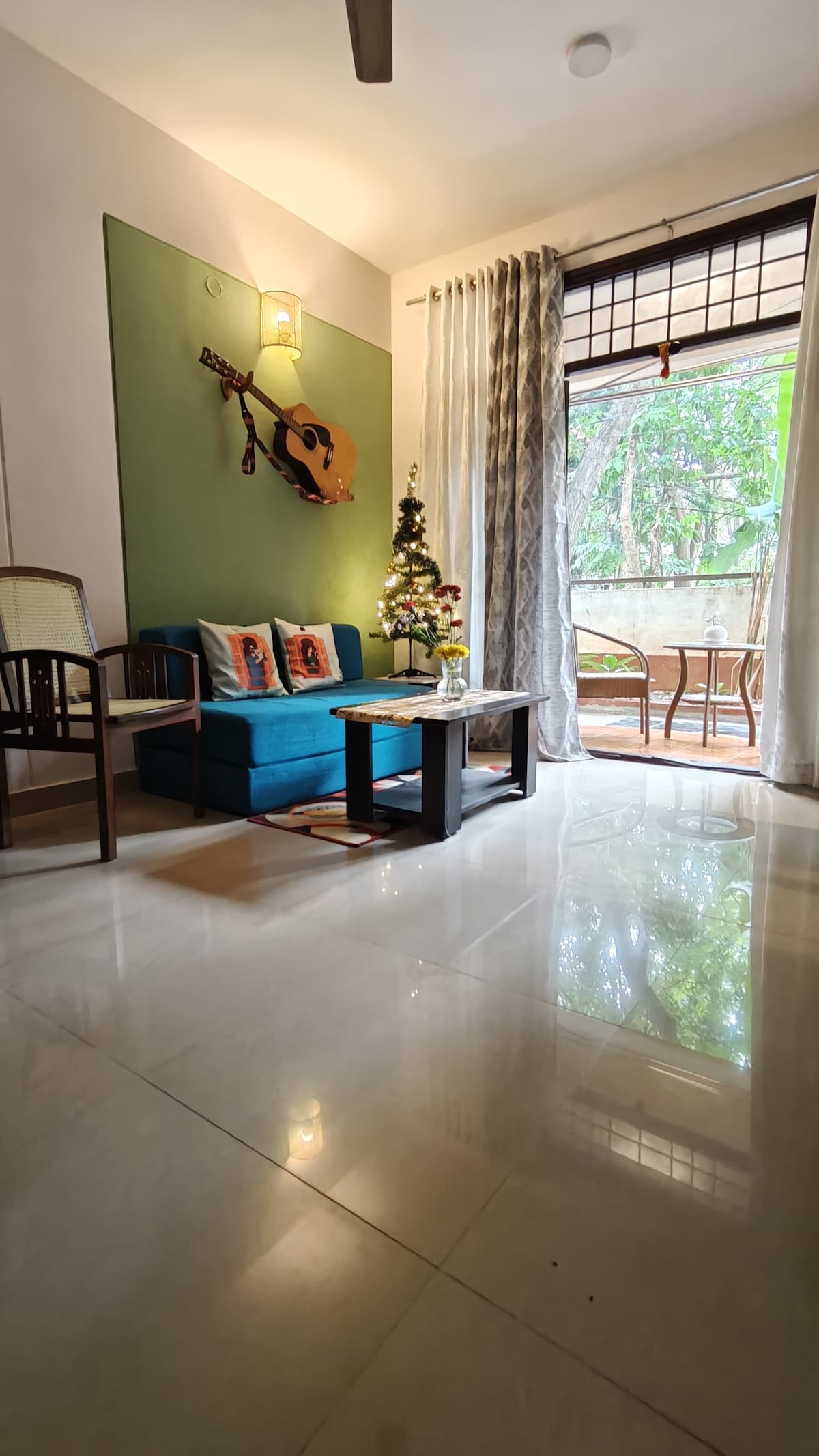 A spacious 1-bedroom studio in the heart of Indiranagar with a private balcony, potted plants, a mango tree, and a kitchen. Thoughtfully designed - minimal, homely style - filled with natural light and quiet charm. A 1 min walk from the metro and some of Bangalore’s best cafés. An extension of our calm way of life — ideal for solo travellers, couples, and work trips. Birds and butterflies often drop by to say hello. Includes King bed Wi-Fi+workspace Modern bath Kitchenette with essentials only