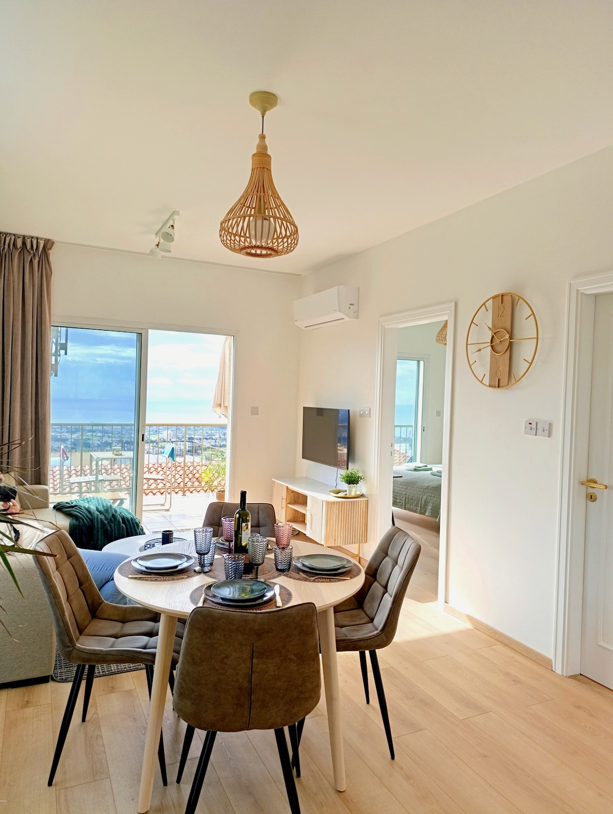 Vkroč do klidu! Unikni do sluncem zalitého úkrytu na klidném svahu. Odpočiň si u bazénu, nasávej slunce a vychutnej si úchvatný výhled na moře a zlaté západy slunce. Jen 15 minut jízdy od Paphosu, naše dvě okouzlující studia jsou ideální základnou k prozkoumání. Pláže, přírodní stezky, přístav, Modrá laguna a staré město Pafos jsou vzdáleny 15–30 minut jízdy. Bezplatné Wi-Fi, parkování, vesnické náměstí s tavernami a vinným barem, jen 4 minuty jízdy. Auto je nezbytné. Bazén je otevřený po celý rok (není vyhřívaný).