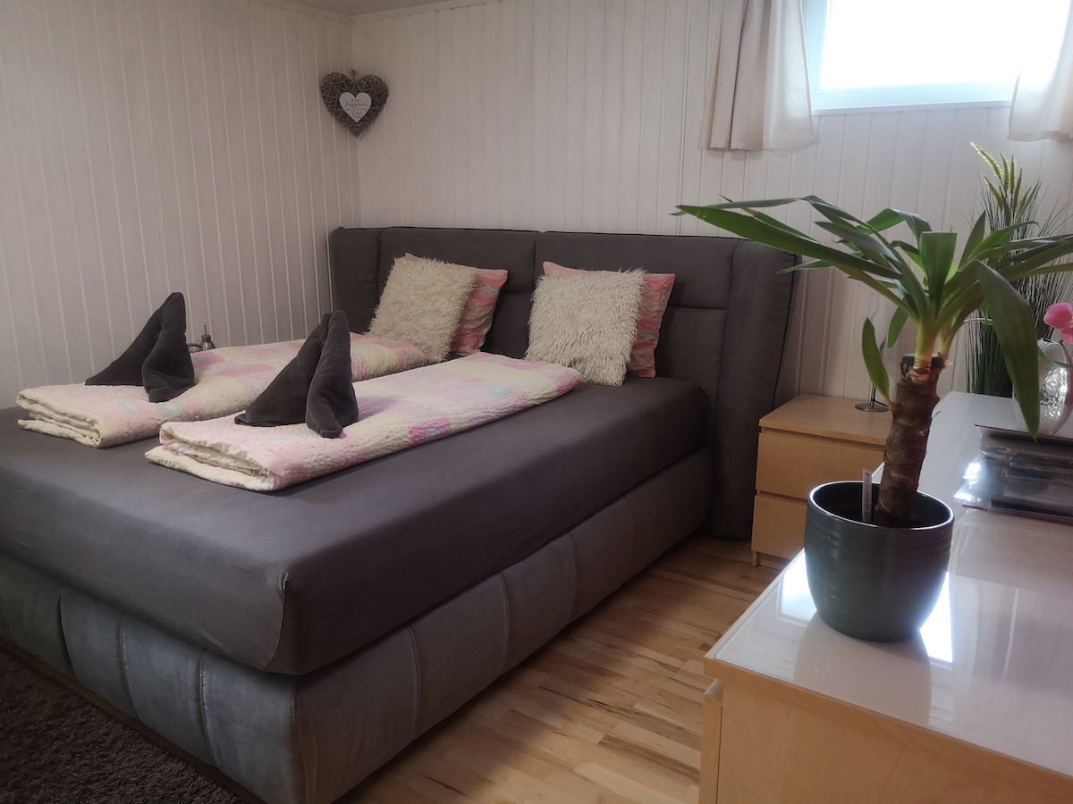 Tak blízko města a přesto uprostřed přírody! 2 pokojový sklepní byt (kuchyň-obývací pokoj s rozkládací pohovkou, ložnice s vodním lůžkem), samozřejmostí je koupelna, WC a vlastní vchod. Majitelka žije ve stejném domě. Optimální poloha v idylické přírodní rezervaci "Völsersee" přesvědčuje také svou blízkou polohou rozmanitého městského života Innsbrucku. Ti, kteří se cítí pohodlně v horách a přírodě, ale nechtějí si nechat ujít město, jsou přímo tady.