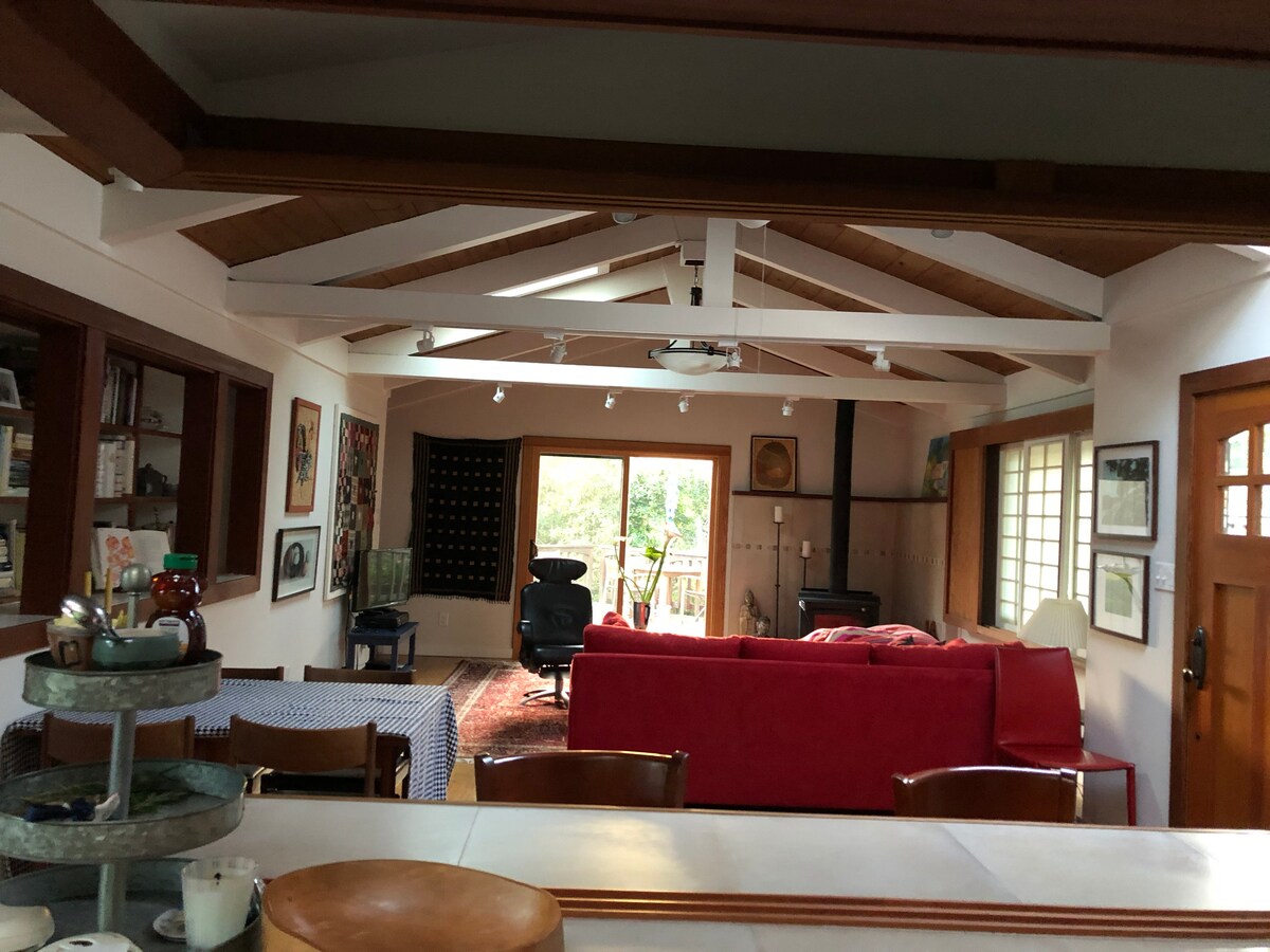 Opravdu jedinečný ručně vyrobený dům poháněný solární energií z místních materiálů plný umění a řemesel místních umělců a pokladů, které jsme shromáždili z celého světa. Tento slunečný dům, který hosté popisují jako „Asian Vintage“, se nachází nad celoročním potokem a je obklopen starými zahradami a lesem s vavřínem, dubem a jedlí. Asi hodinu od San Francisca a údolí Sonoma a Napa, 1,5 míle od stanice Point Reyes a 2 míle od návštěvnického centra Point Reyes National Seashore Visitors Center a Golden Gate National Recreation Area. Snadný přístup k plážím, vodním cestám a parkům pro pěší turistiku, plavání, surfování, jízdu na kajaku, paddleboardingu, horskou cyklistiku a vše, co West Marin nabízí. Nebo si prostě užijte odpočinek v tomto pohodlném a krásném prostředí. Projděte se dolů na Inverness Park Market a Tap Room na konci ulice a vychutnejte si některá z nejlepších jídel a nápojů v oblasti s velmi místní atmosférou. V patře najdete velký obývací/jídelní/kuchyňský prostor postavený z obrovských trámů, široké prkenné jedlové podlahy ze dřeva frézovaného přímo na místě, řadu oken s výhledem na les z ptačí perspektivy a velké vitráže. Plně vybavená kuchyně a zásobená spíž vám umožní připravit si na našem vintage sporáku O'Keefe a Merritt bohaté jídlo od místních farmářů a dodavatelů. K dispozici je myčka nádobí, mikrovlnná trouba, toustovač, mixér, kávovar a mixér. Balinéský jídelní stůl z kokosového dřeva a tygřího bambusu pro 6 osob. Obývací prostor nabízí pohodlnou rozkládací pohovku s matrací z paměťové pěny. K dispozici je wifi a chytrá televize s Netflixem, Hulu Plus a Amazon Prime. Nebo si vychutnejte některé z DVD z naší malé knihovny. Stereo tuner s AUX kabelem umožňuje streamovat hudbu ze zařízení vybaveného 2,5mm konektorem. Na terase u obývacího pokoje je stůl, židle a malý plynový gril. Také v přízemí je zimní zahrada se sklem od podlahy až ke stropu a skleněnou střechou, balijský bambusový nábytek, snídaňový stůl a boční terasa. Koupelna má vanu na nožičkách a sprchový kout. V obývacím pokoji je ústřední topení s termostatem. Dole je velká ložnice s plyšovým kobercem obklopená skalními stěnami, obrovskými trámy, manželskou postelí, obývacím pokojem, TV s plochou obrazovkou a kamny na dřevo. Také malá, světlá ložnice s jednolůžkem a připojenou malou terasou. Předsíň mezi ložnicemi obsahuje umyvadlo a vede do soukromé oblasti s kamennou zdí, břidlicovou dlažbou, venkovní sprchou se dvěma hlavicemi a vířivkou. K dispozici je prádelna s pračkou, sušičkou, dřezem a úložným prostorem na ložní prádlo. Venku najdete kamennou terasu se stolem, židlemi a slunečníkem. K dispozici je přístřešek pro 2 auta. Náš syn David žije na pozemku v malé samostatné chatě a slouží jako manažer a správce. S největší pravděpodobností bude vaší kontaktní osobou zde na Airbnb a po celou dobu vašeho pobytu. Přečtěte si prosím domácí pravidla v této nabídce a domácí příručku na stole u vchodu, až dorazíte.