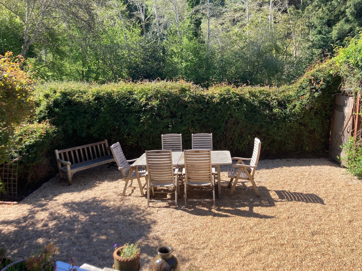 Historická chata ze sekvoje z roku 1917, zrekonstruovaná a zařízená tak, aby si zachovala svůj jedinečný charakter. Budeš mít pocit, že se vracíš v čase. Wee Housie je útulný a okouzlující, s krbem (a ústředním vytápěním a teplou vodou!), dvěma ložnicemi (jedna s manželskou postelí a dvě samostatné postele), jednou koupelnou s vanou a venkovní vířivkou a sprchou. Slunná terasa a zahrada ve venkovském stylu. Kousek od vesnice Inverness a kousek autem od stanice Point Reyes a národního parku. STR P5021